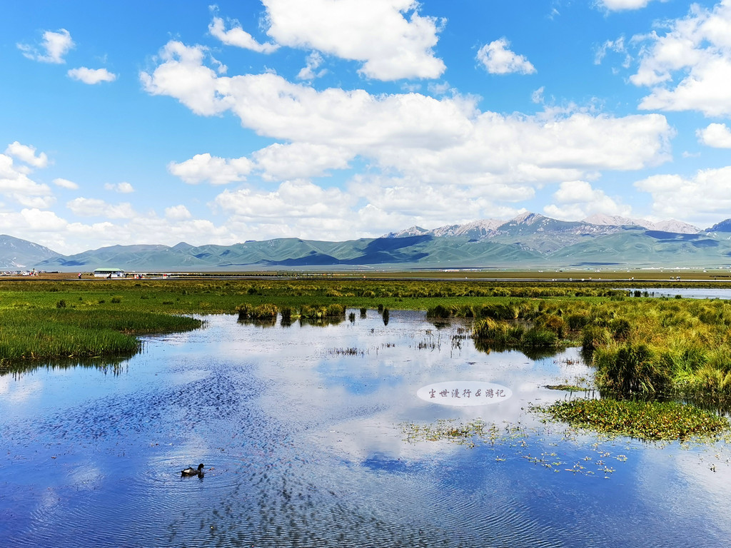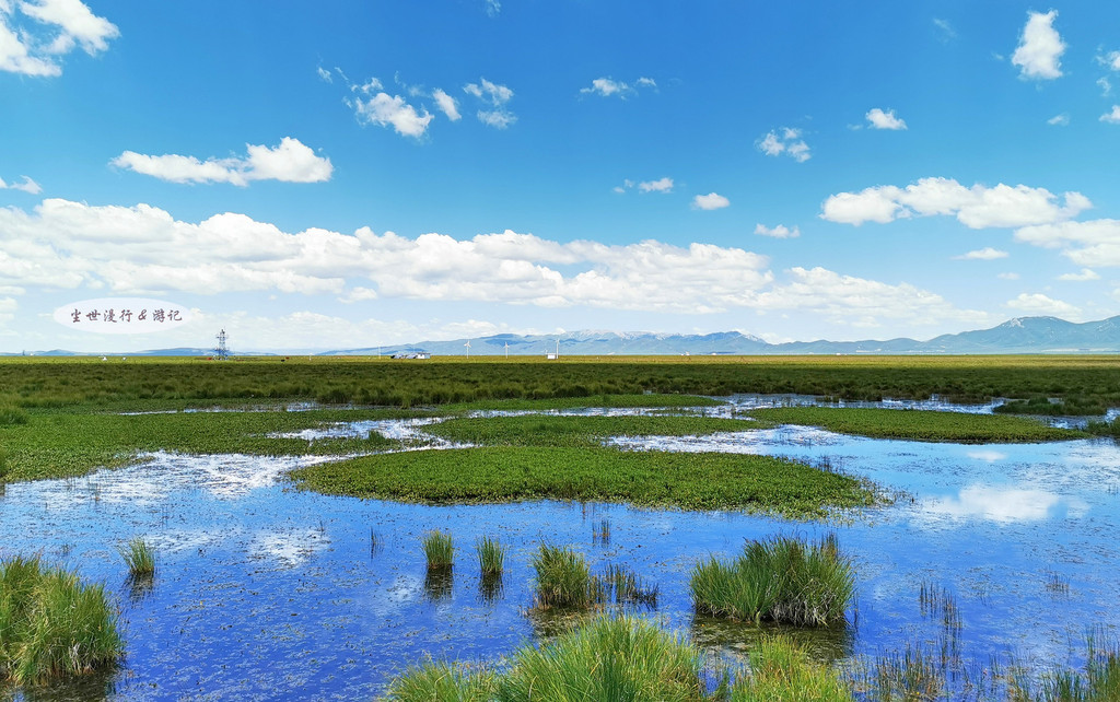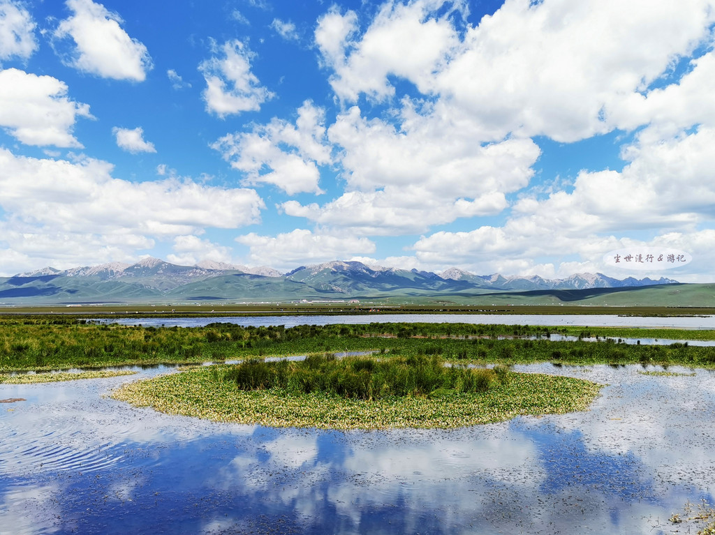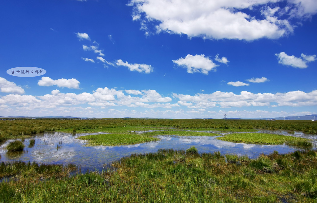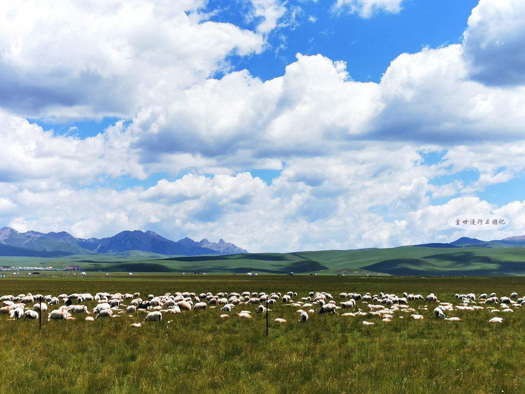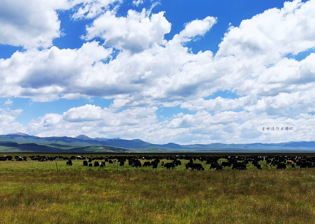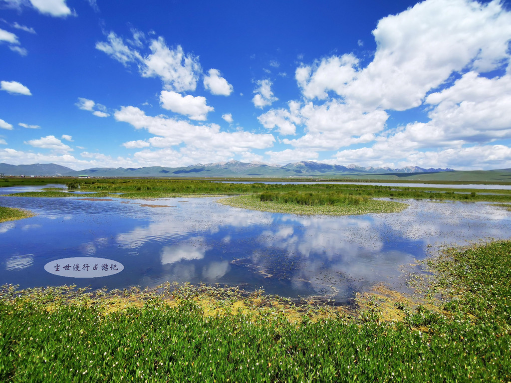 蓝天白云,水草繁茂,牛羊遍野,天水一色……