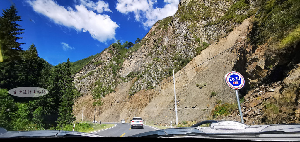 213国道即策克—磨憨公路,简称“策磨线”,起点为兰州市西固区柳泉镇,终点为西双版纳自治州勐腊县,全程2827千米,经过甘肃、四川、贵州和云南4个省份。此时行驶的这段路是四川阿坝州若尔盖县临近花湖景区。