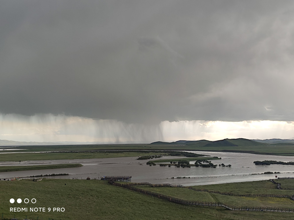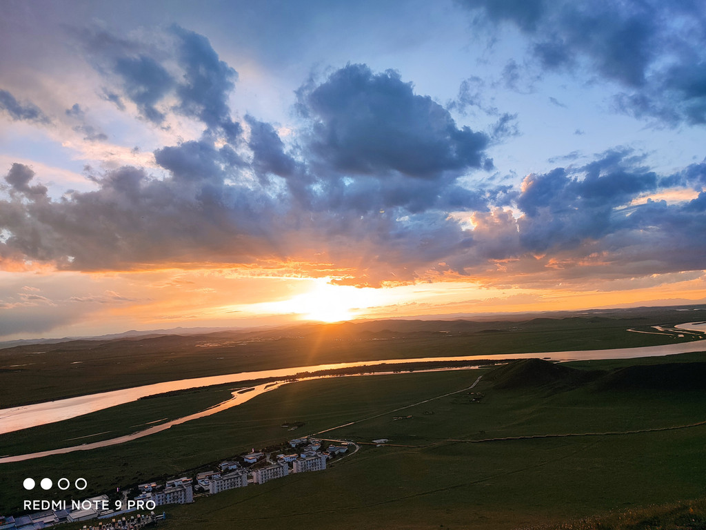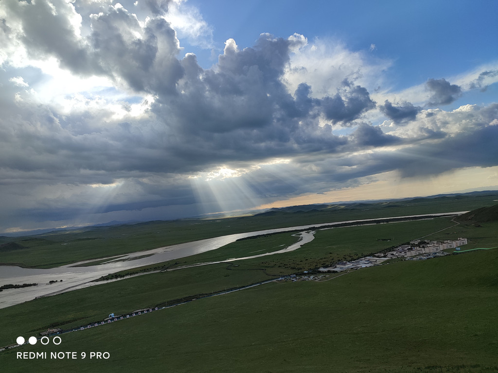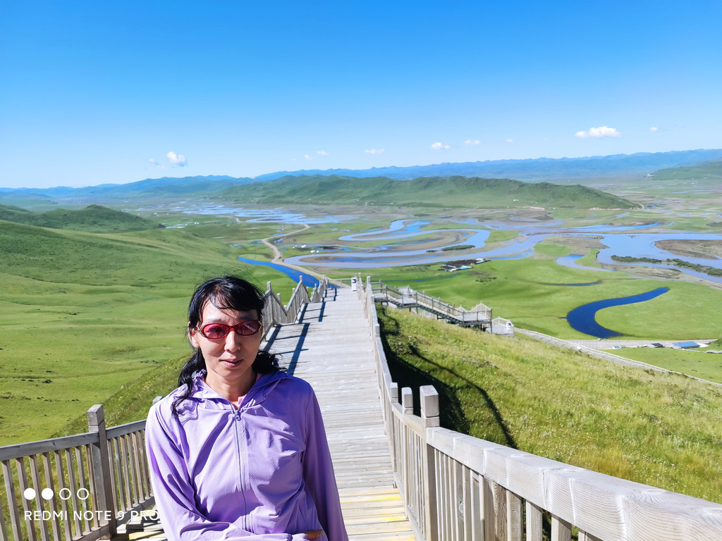 去九曲黄河第一湾主要看天气,如果是白云朵朵,或雨后初晴,那景观就比较好看。我们这次运气是非常好的。一开始是天气晴朗,到黄河边湿地公园近距离看了一会黄河和白河交汇的景致,然后就去沿栈道上观景台。刚准备往上走,突然下起了大雨,只能暂时躲避,过了半个小时,雨停了,太阳又出来了,霞光普照大地,云朵一片金黄,过一会又下雨了,远处可以看到云朵下像瀑布一样的云,非常奇特。等天快黑了,云彩逐渐发红,霞光景观出现了,非常漂亮。一次非常难得的经历。