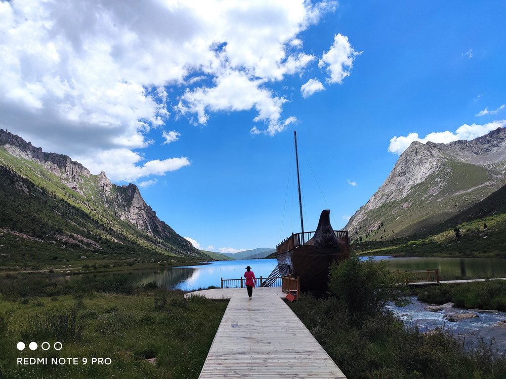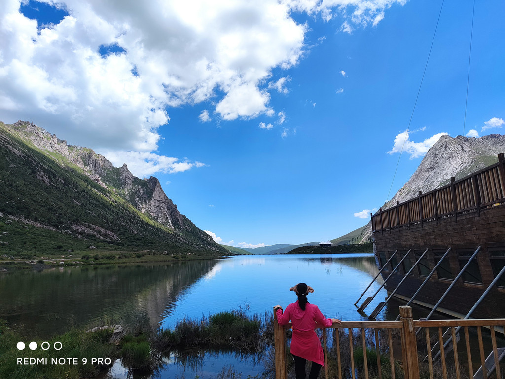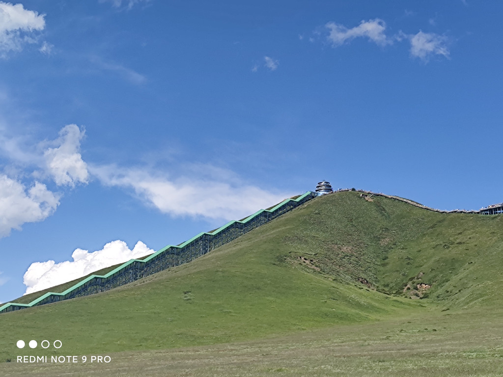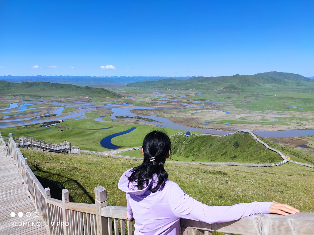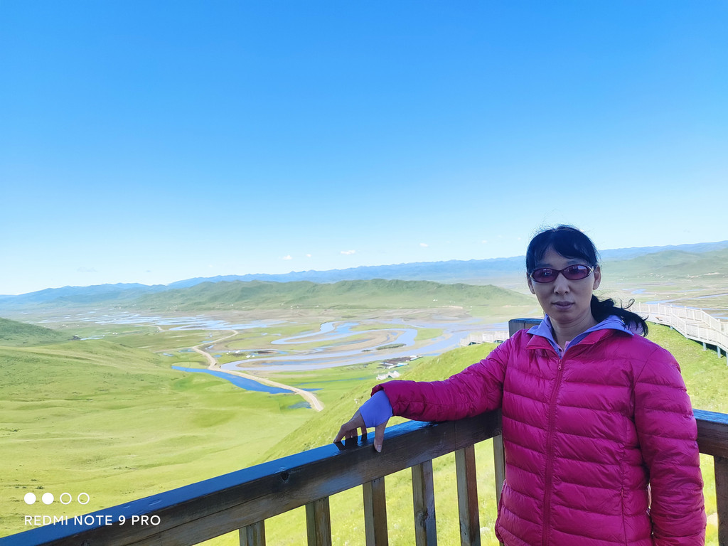 漫泽塘是若尔盖草原上的一个正在开发的景区,尚未收门票,已建好观景台,车可以直接开上去,上面有观景天幕,桌子椅子,卫生间,可以歇歇脚。上面的景色还是非常好的,此处可以看到河流弯弯曲曲,在山间缓缓流动,尤其是早晨阳光照射下,有的水面呈现天蓝色,山峦起伏,白云飘荡,是一个观景休闲的好地方。