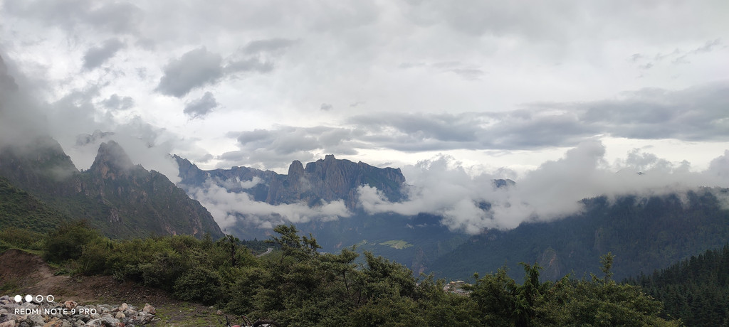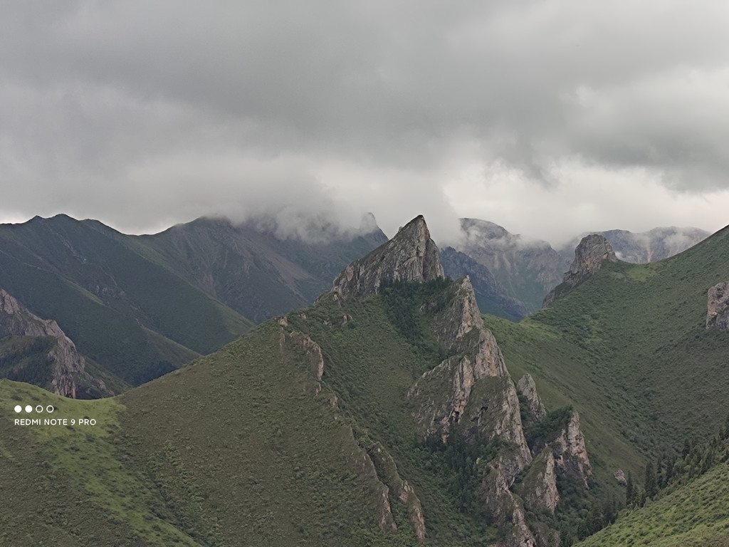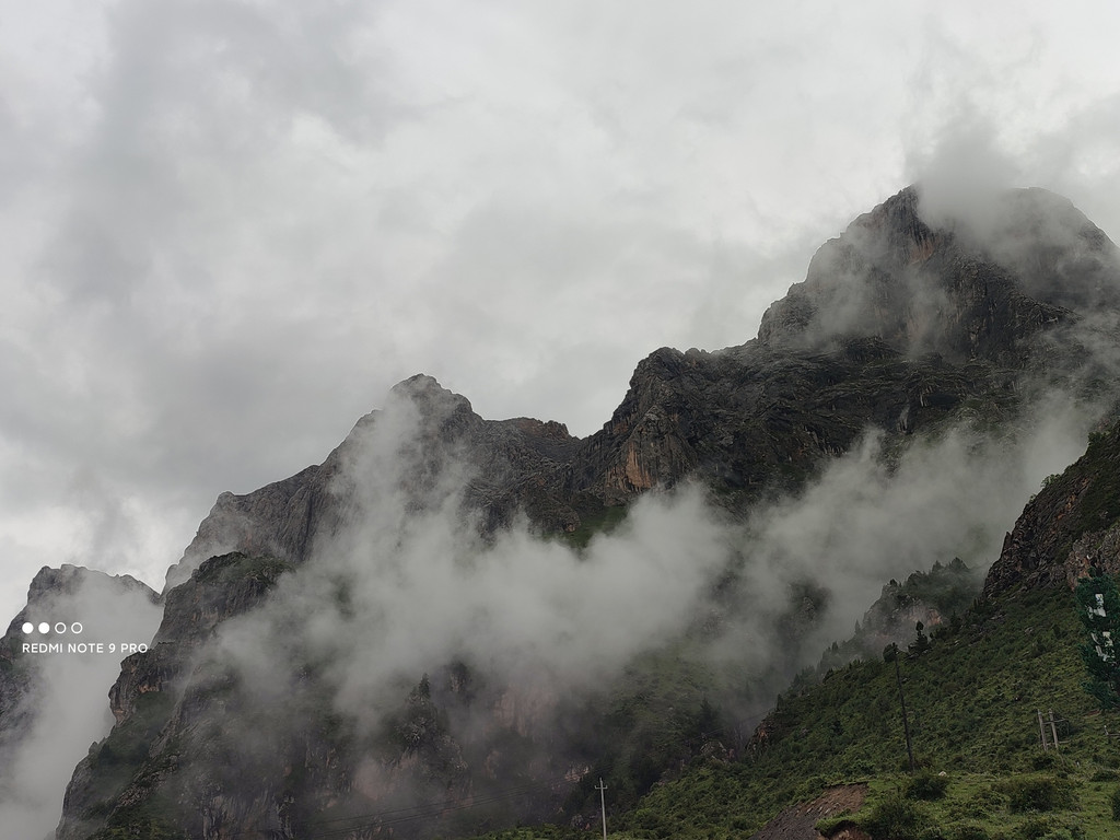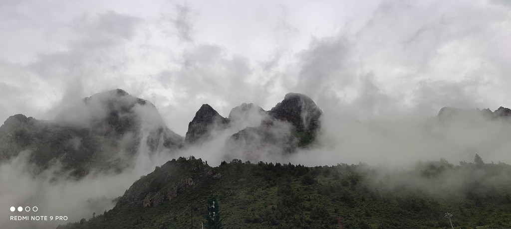 在行走过程中下起了小雨,云雾升腾,山峰若隐若现,似仙境一般。