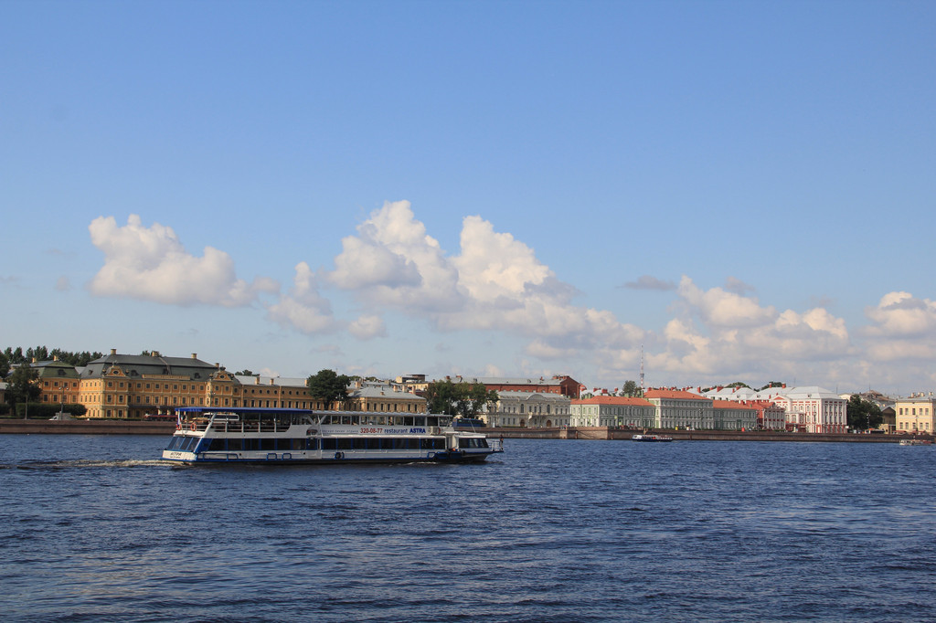 俄罗斯日出时间为早上3点半,所以虽然是早上六点,但天已经大亮,旅行团出发的时间是上午九点,于是我们背上相机在宾馆周围转悠.由于不懂俄文,我们不知道这个宾馆的名字,但地理位置却是极好,临河,临街.清晨的大街上除了卖早点的没有什么行人,公交车上乘客也寥寥无几,以致我们在公交站拍照,司机特意把车停下,以为我们要上车,大哥,不好意思,没有卢布,不然就真上车和你溜达一圈了.静寂的早上,没有限时限点的大巴车等着,没有了好心导游的催促,才能体会到这座城市的魅力.石块铺就的河岸,很多当地人静静的坐在那啥也不干,我也很想加入其中,抛却一切烦恼.