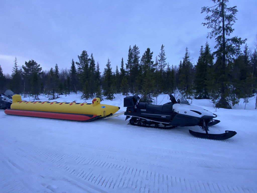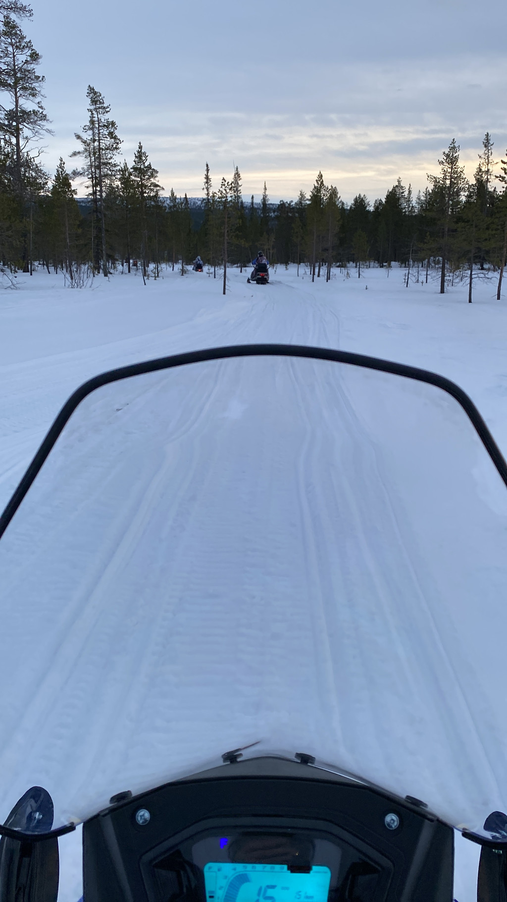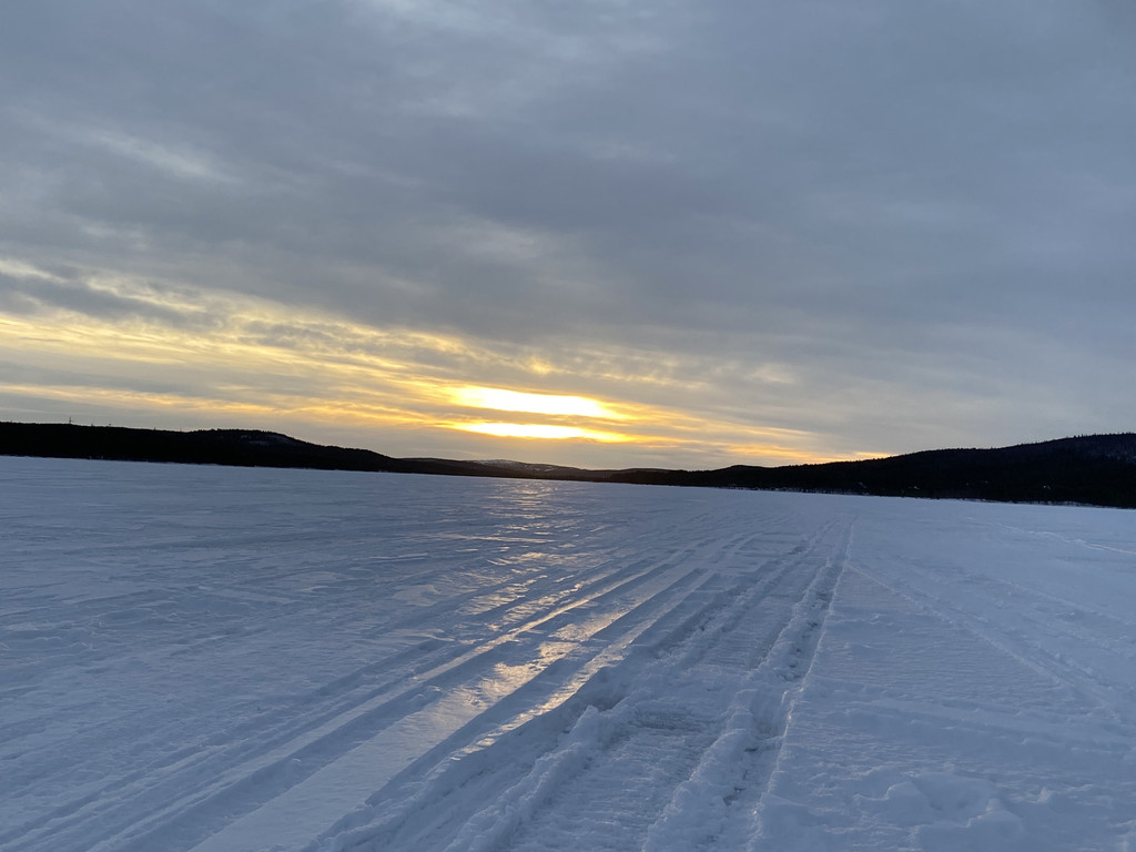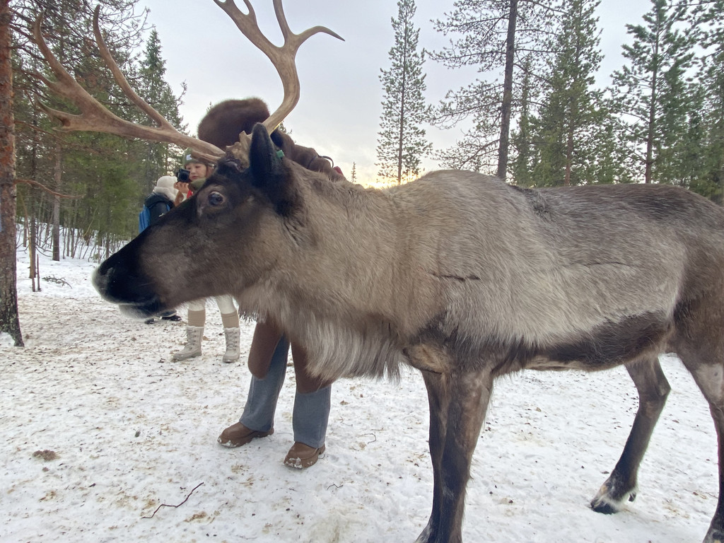 因为订了12点钟的入园,我们直接驱车赶去北极光公园。在摩尔曼斯克可以体验狗拉雪橇、驯鹿拉雪橇,以及雪地摩托等项目的有萨米村、冻土公园、老小哈士奇公园,以及北极光公园等几个点。相对而言,北极光公园距离市区不远,价格适中,所以我们选择了北极光。说是公园,其实就是一个营地,去售票点报了小某书上联系的预订人信息,先体验的是驯鹿拉雪橇,雪橇由四头驯鹿拉着,最多可以两位游客横坐在雪橇上,前面有一工作人员拿一根棒子不断捅驯鹿的屁股,让它们绕着既定的线路跑起来,就这样跑了两圈算是完成。第二个项目是参观哈士奇、阿拉斯加犬等雪橇犬的休憩地,哈士奇又称西伯利亚雪橇犬,是世界最古老的犬种,属于中型犬。哈士奇属于服从度不太高的犬,憨态可掬,眼睛显得很小,而且有时莫明其妙地做出一些不让人理解的笨事、坏事,所以也被称作“二哈”,但其实哈士奇非常聪明,在冰天雪地里,哈士奇作为拉雪橇的头犬,要在快速前行中能迅速预判前方路况并随机应变,以保护主人安全。而且哈士奇性情温顺友善,极少有攻击性行为。在这片林地里,有大约十多条雪橇犬趴在狗屋前,以哈士奇为主,毛色从黑、黑白相间、纯白都有,眼睛一般为棕色和蓝色。你可以尽情撸它们,或者给它们拍照,它们似乎不为所动,静静地趴着或者蜷缩着打着盹,这也体现了它们温顺的性格。离开雪橇犬的休憩地后,就是驯鹿喂食项目了。一位年长的工作人员拿了一个装满苔藓地衣的桶,让我们各自取一些,驯鹿一看到,就纷涌上来,伸出舌头来舔舐我们手上的“美食”,但对落在地上的食物又不愿低头再吃。驯鹿又成为“角鹿”,角的分枝繁复是其外观上的重要特征,长角分枝繁复,毛色有黑、白、灰相间,毛并不长,毛皮较硬。驯鹿生活在北极地带,善于在复杂地形中穿行,驮运能力好,被誉为“林海之舟”。驯鹿似乎很保护它们的角,不轻易让人触碰,有两头鹿角有缺损,甚至还没有角。它们进食量也很惊人,满满一桶的饲料很快一抢而空。最后一个体验项目是雪地摩托,在穿了厚外套、裤子、防风面罩和头盔裹得严严实实后,教练教我们驾驶方式,雪地摩托和普通摩托差不多,只不过把轮子换成了雪橇,最多可以两人驾乘,左手刹车,右手油门,教练要求油门慢慢加,尽可能不要使用急刹,利用雪地的摩擦力慢慢减速。简单教好后,教练带队出发,八辆车形成的车队一字前行,车距在15米左右,保持好速度和队形。速度加上去后,风开始大起来,刚开始地形起起伏伏,颠得厉害,在穿过一片树林后,豁然开朗,出现一望无际的雪地,我们依次停车在这里休息拍照。下午两点多左右,夕阳照在白茫茫的雪地上,泛着金光,眼界所及,没有其他任何造物、没有丝毫声音,似乎到了世界的尽头。我们在雪地里躺平、侧卧、打雪仗,也忘记了时间和空间。拗着各种造型拍照后就返程了,全部行程大概45分钟,感觉还是挺刺激的,最关键是看到了夕阳下美得不可方物的雪世界。尽兴后打车回城,在路上看到了漫天的火烧云,尘世浸染,无边无际。