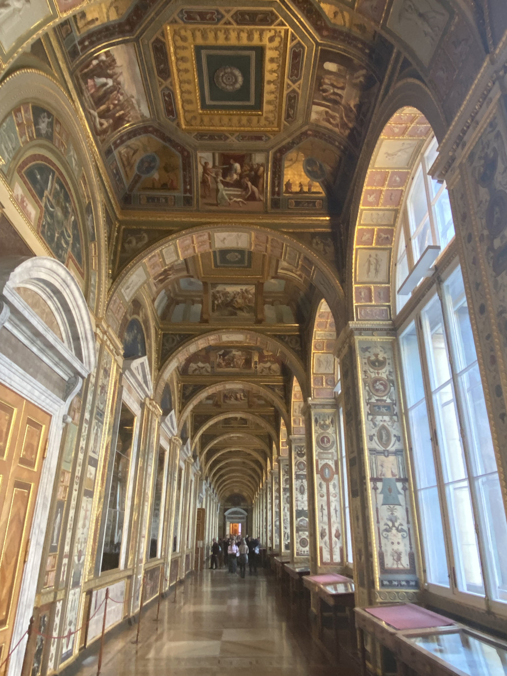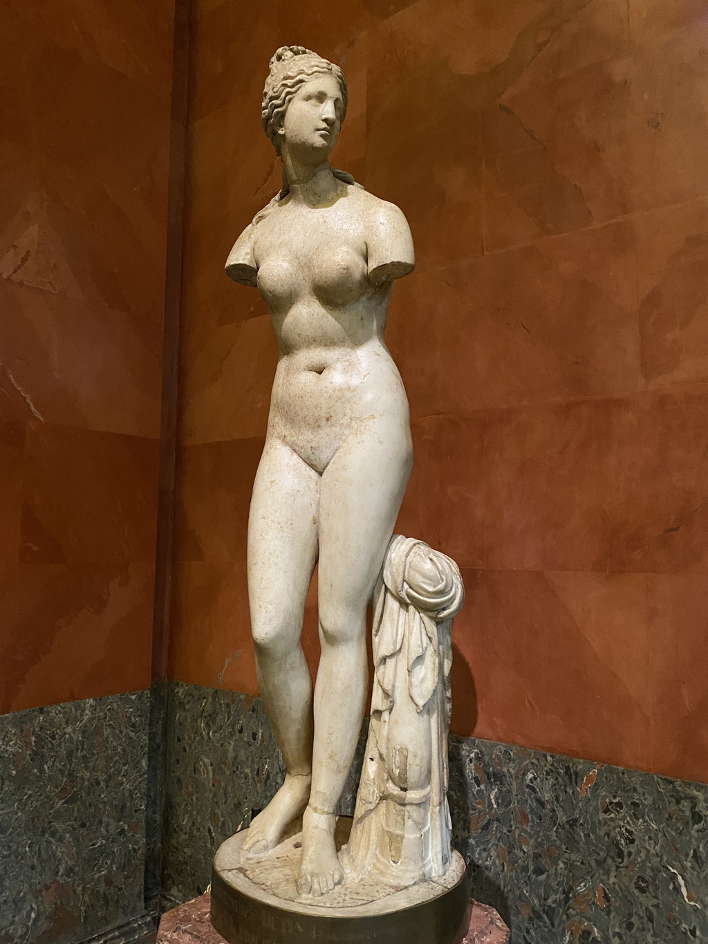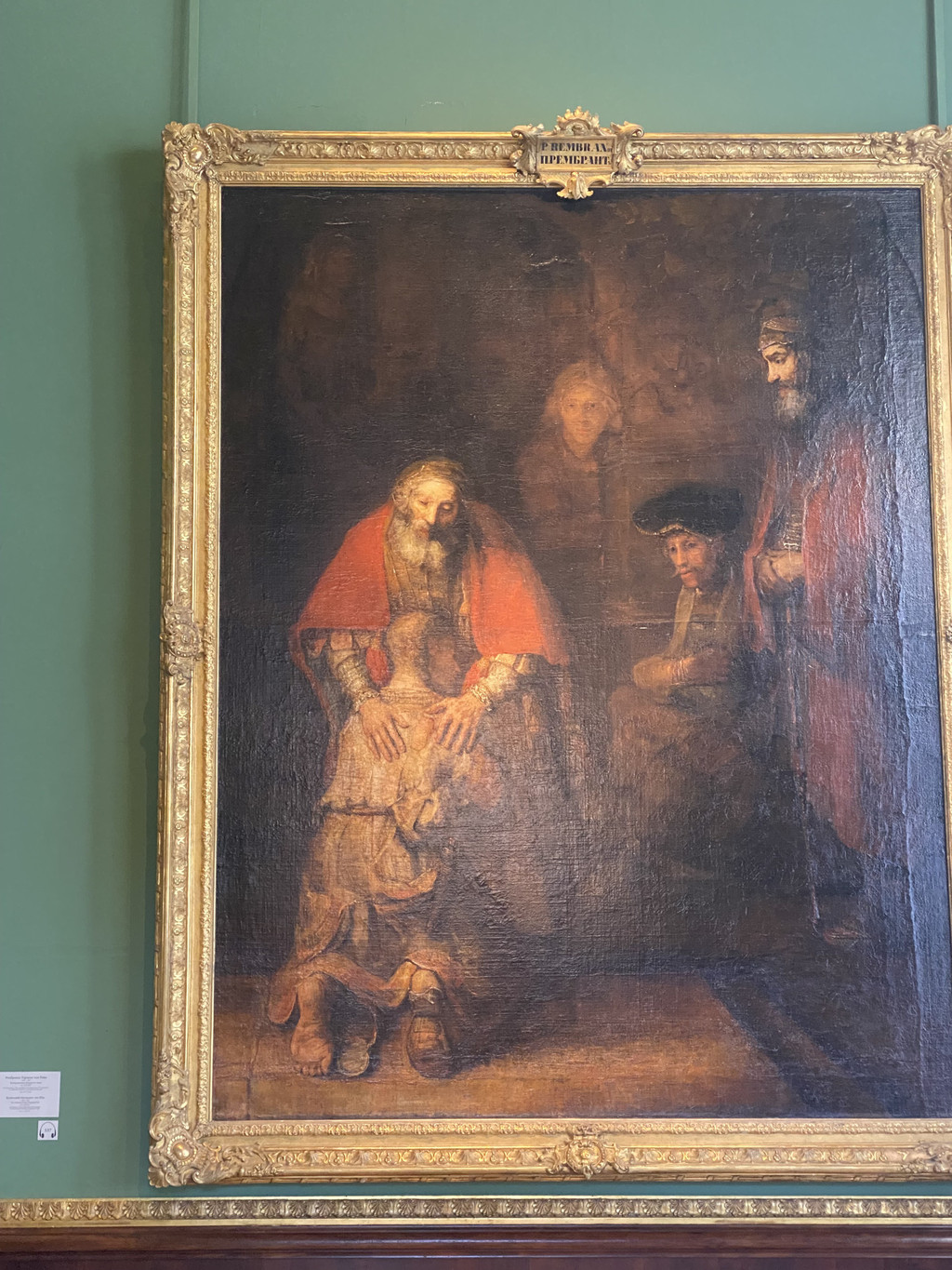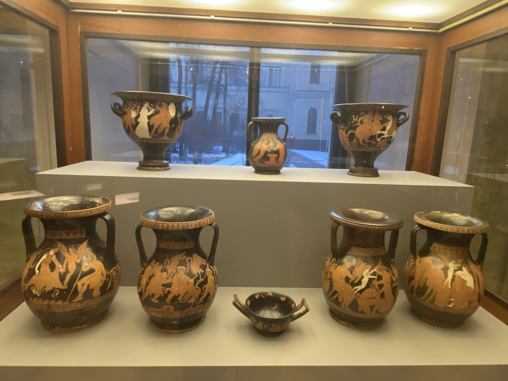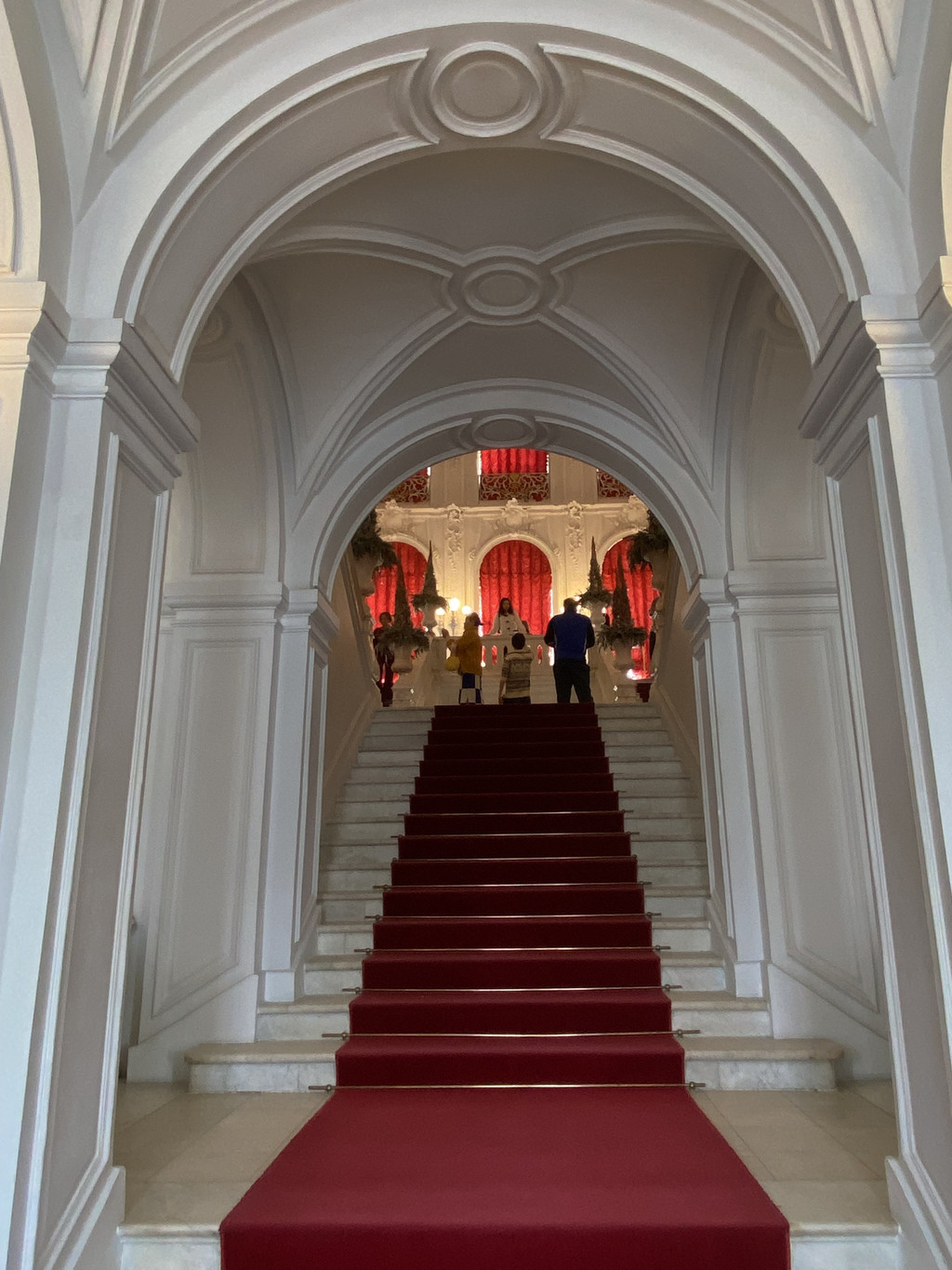 冬宫是昔日的沙皇皇宫,现为国立艾尔米塔什博物馆,是世界四大博物馆之一,也是门票最便宜的,相当于人民币40元。博物馆由五座巨大的建筑组成,有超过400个展厅,藏品数量惊人:370万余件艺术品,1.5万幅绘画,1.2万座雕塑,60余万幅线条画,还有100余万枚硬币。进入博物馆,先是存外套,租讲解器500卢布一人,扫票入场后先看到的是铺设红毯的约旦大厅,这是一网红拍照打卡地。里面还有两个厅内饰豪华,一是圣乔治大厅,这是冬宫的心脏所在,建于叶卡捷琳娜二世时期,用来举行最高等级的皇家仪式、招待会和御前会议等,正中央摆放着黄金宝座。二是彼得厅,则体现了帝俄风格的豪华装饰和沙皇时代的辉煌。这次冬宫参观,见到了几件镇馆之宝,其一是“孔雀钟”,上面有猫头鹰、孔雀、公鸡和松鼠四种动物,是18世纪英国钟表名匠詹姆斯考克斯所制造并献给叶卡捷琳娜二世。如果拧上发条,钟上的金树叶簌簌抖动,猫头鹰眨眼,孔雀开屏,公鸡啼叫,松鼠跳动。其二是达芬奇的两幅圣母像:《柏诺瓦的圣母》展现母爱的神圣,《圣母与圣婴》温柔而庄重。其三是米开朗基罗的雕塑——《蜷缩成一团的小男孩》,展现了男孩的痛苦与挣扎。其他的名画和雕塑不计其数,油画多在二楼,一般一个展厅以一位画家命名,如伦勃朗的254展厅,著名的展品有《达娜厄》、《浪子回头》《红衣老人》、《花神》;鲁本斯的247展厅,著名的展品有《维纳斯与阿顿尼斯》、《酒神巴克斯》;提香的221展厅,著名的展品有《忏悔的抹大拉》等。227展厅的拉斐尔长廊与梵蒂冈同款,有“天花板上的圣经”之称。雕塑展览则在一楼为主,出名的有朱庇特(宙斯)雕像,于18世纪在罗马郊外古罗马皇帝多米提安的居所遗址发现,是冬宫最大的古雕像之一,美惠三女神雕像(希腊神话中的光辉女神、激励女神和欢乐女神)是意大利新古典主义雕塑家卡诺瓦的代表作,以及维纳斯雕像(公元前一世纪在希腊米洛岛出土,是卢浮宫断臂维纳斯的“妹妹”)、伏尔泰的坐像等。一楼还有古埃及展,能看到木乃伊和法老石棺。三楼是远东馆,游客明显稀少,据说有中国敦煌的藏品,不过找了一圈也没发现。整个博物馆要全部兜完步行约20公里,如果在每件展品前逗留一分钟,全部看完需要五年。所以,对于时间有限的游客而言,即使走马观花也需要一整天。我们从上午10点多入馆参观,直到讲解器的电耗完后,才依依不舍地离馆,此时差不多已是晚上6点多。