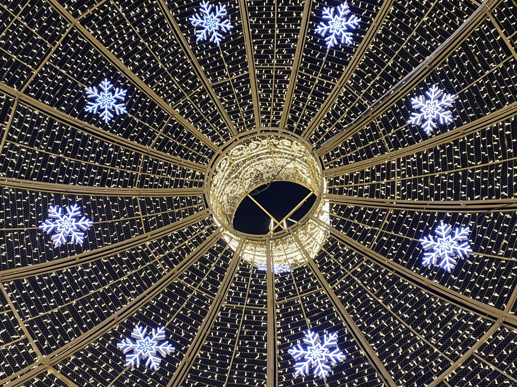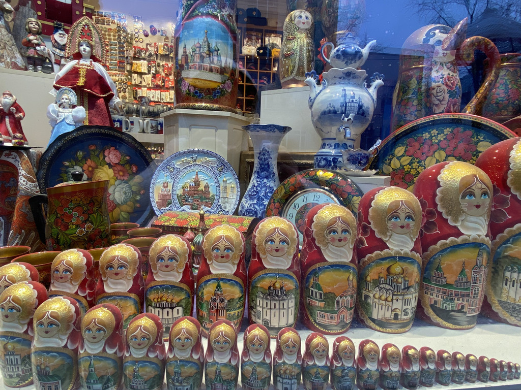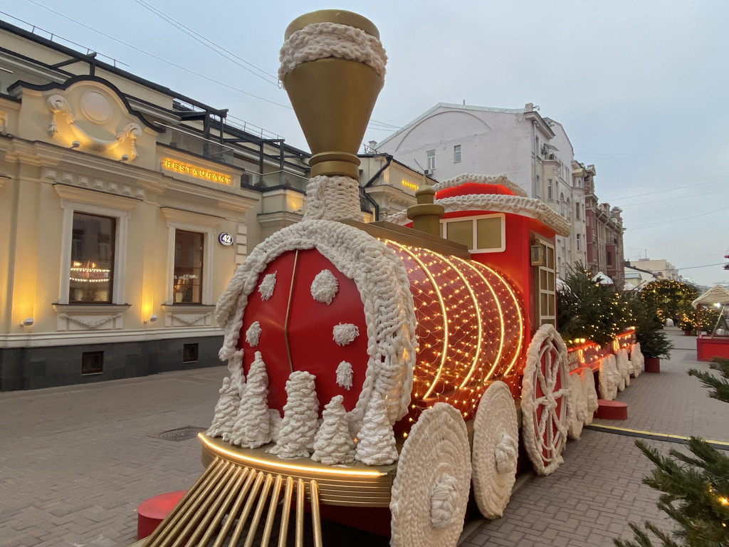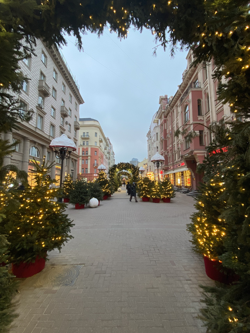 我们订的是红场附近的旅店,虽小小的,但挺有特色,类似芬兰桑拿木屋风格,楼层分布有艺术展示空间和温室花园。俄罗斯的旅馆一般都没有电梯,而且室内的暖气开的很热很闷,甚至需要开窗透气。抵达入住后,我们就前往红场逛逛。一路上华灯齐放,有圣诞主题的,也有中国春节的花灯,红场附近有条步行街,更是张灯结彩,街的中央做了景观小品和售货亭,虽然圣诞过去了一个多月,但是圣诞屋、圣诞花、圣诞老人等的装置还是摆放着,浓浓的圣诞氛围,古姆百货旁甚至还有溜冰场和旋转木马等游乐设施。