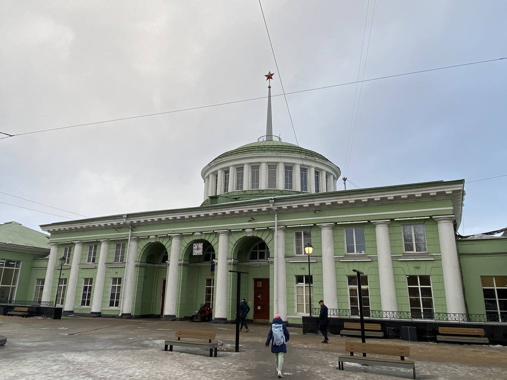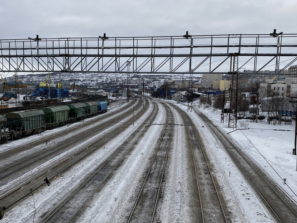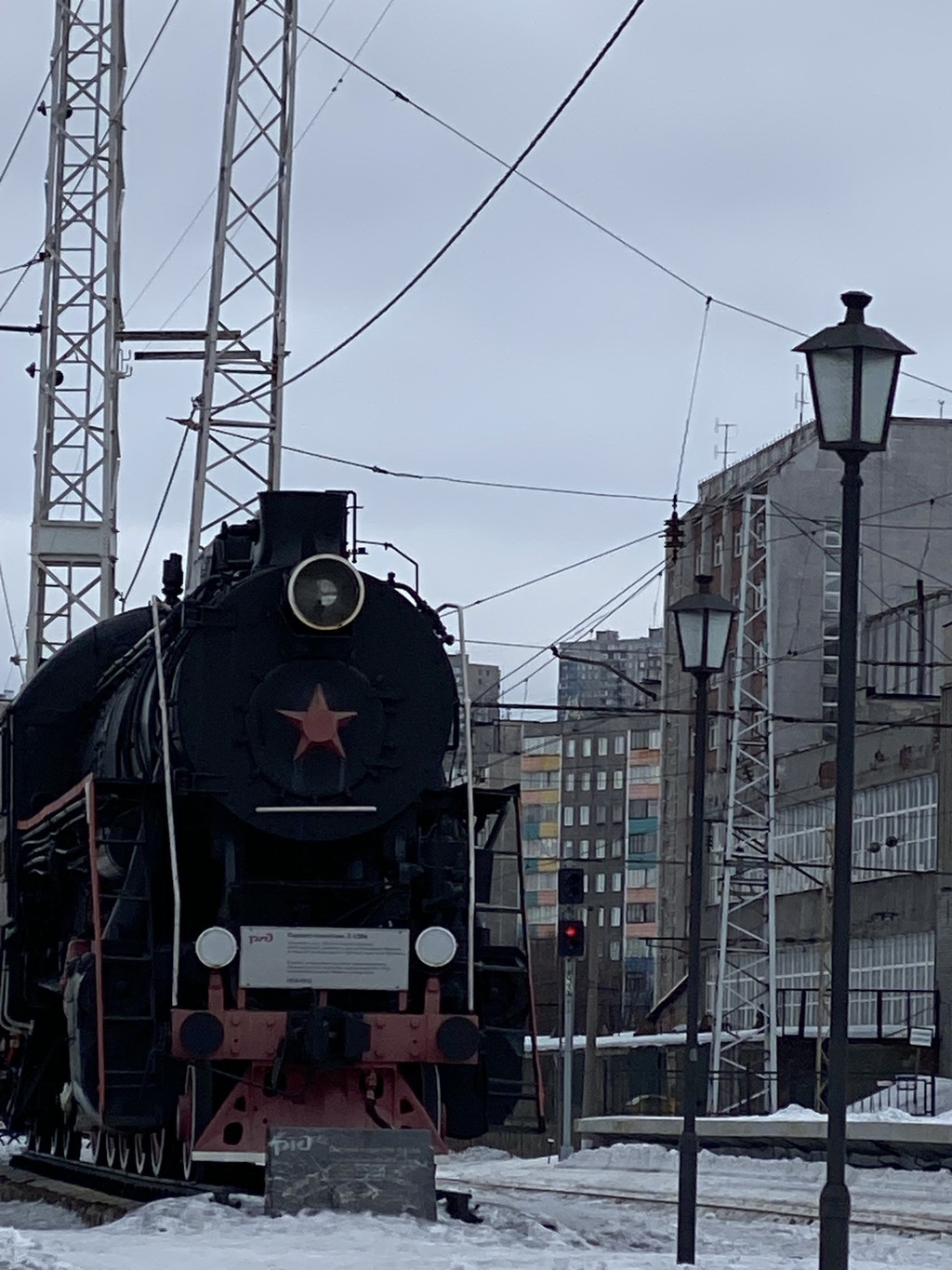 2/9由于捷里持续封路无法成行,所以我们在摩尔曼斯克的行程就延长了,安排变得宽松了许多。摩尔曼斯克城市很小,市中心就在火车站和最北麦当劳附近的广场区域,主要景点也非常集中,基本步行可达。一早去广场旁的银行换了些钱后就直接去逛火车站。摩尔曼斯克火车站是一绿色穹顶建筑,进站很方便,过安检后即使没买火车票也能自由进出,甚至可以直接穿行到月台。火车站并不大,候车大厅里有俄铁的售票窗口,这里始发的北极星号列车开往圣彼得堡、莫斯科等大城市。火车站内有一座天桥,横跨在多条铁轨线上,蜿蜒的铁轨通向远方。进出的既有客运车,也有货运列车,货运列车直接从附近的港口运送货物至全国各地。有根轨道上还停驻着一台老式的火车头,估计是供纪念用的。俯瞰列车进出站,感觉回到了国内县城火车站和绿皮车的年代。