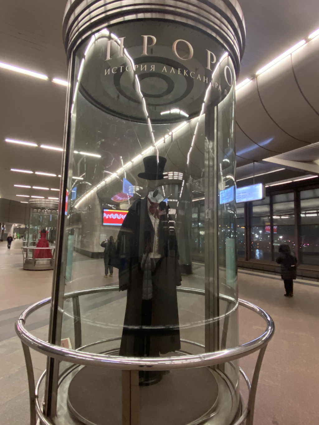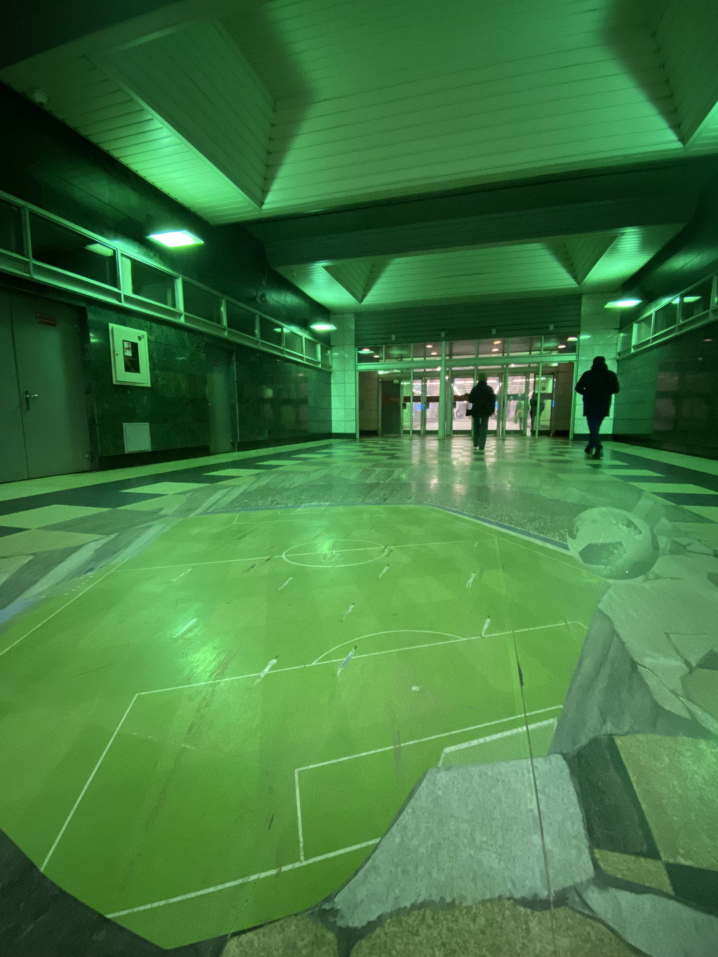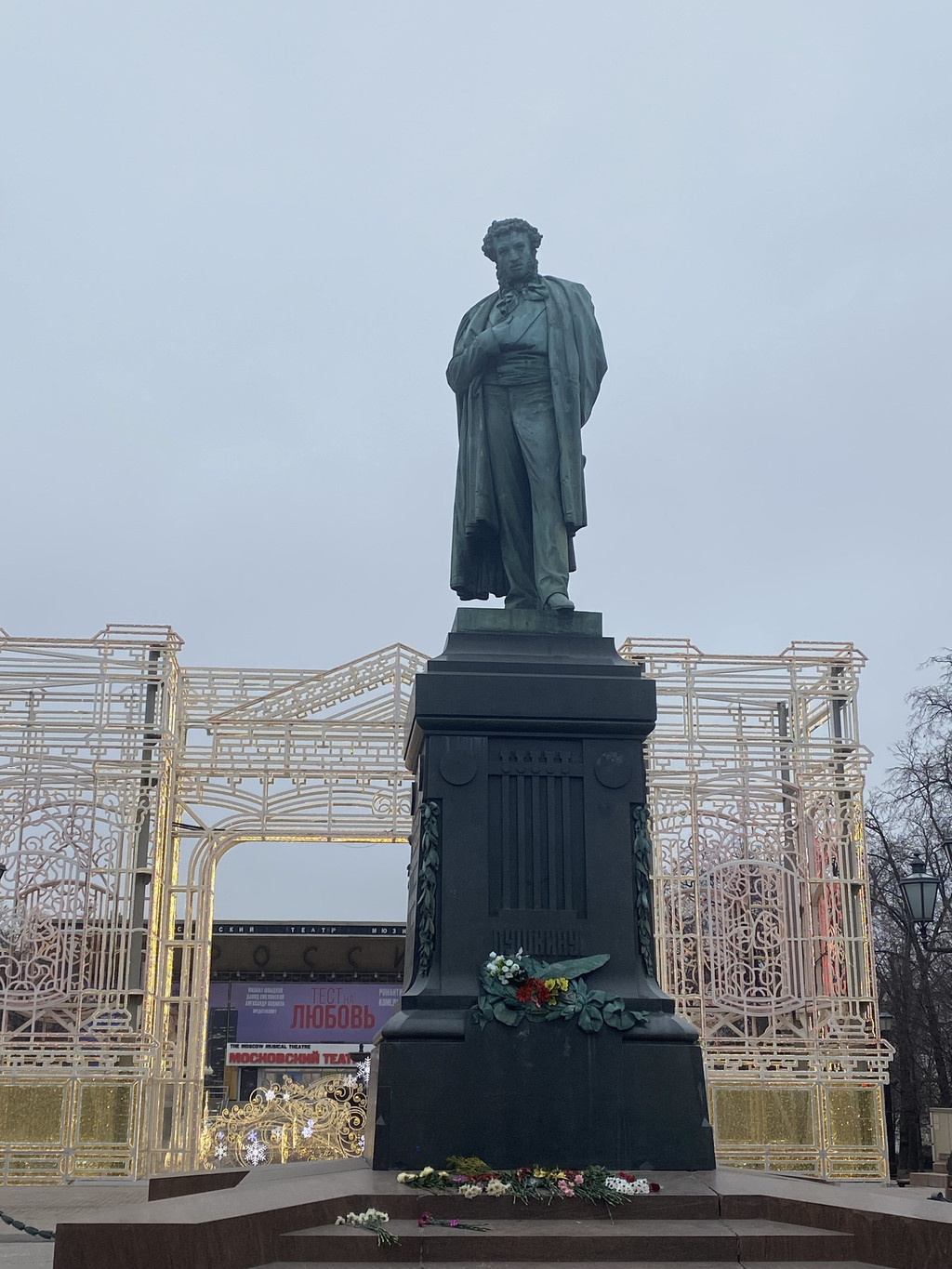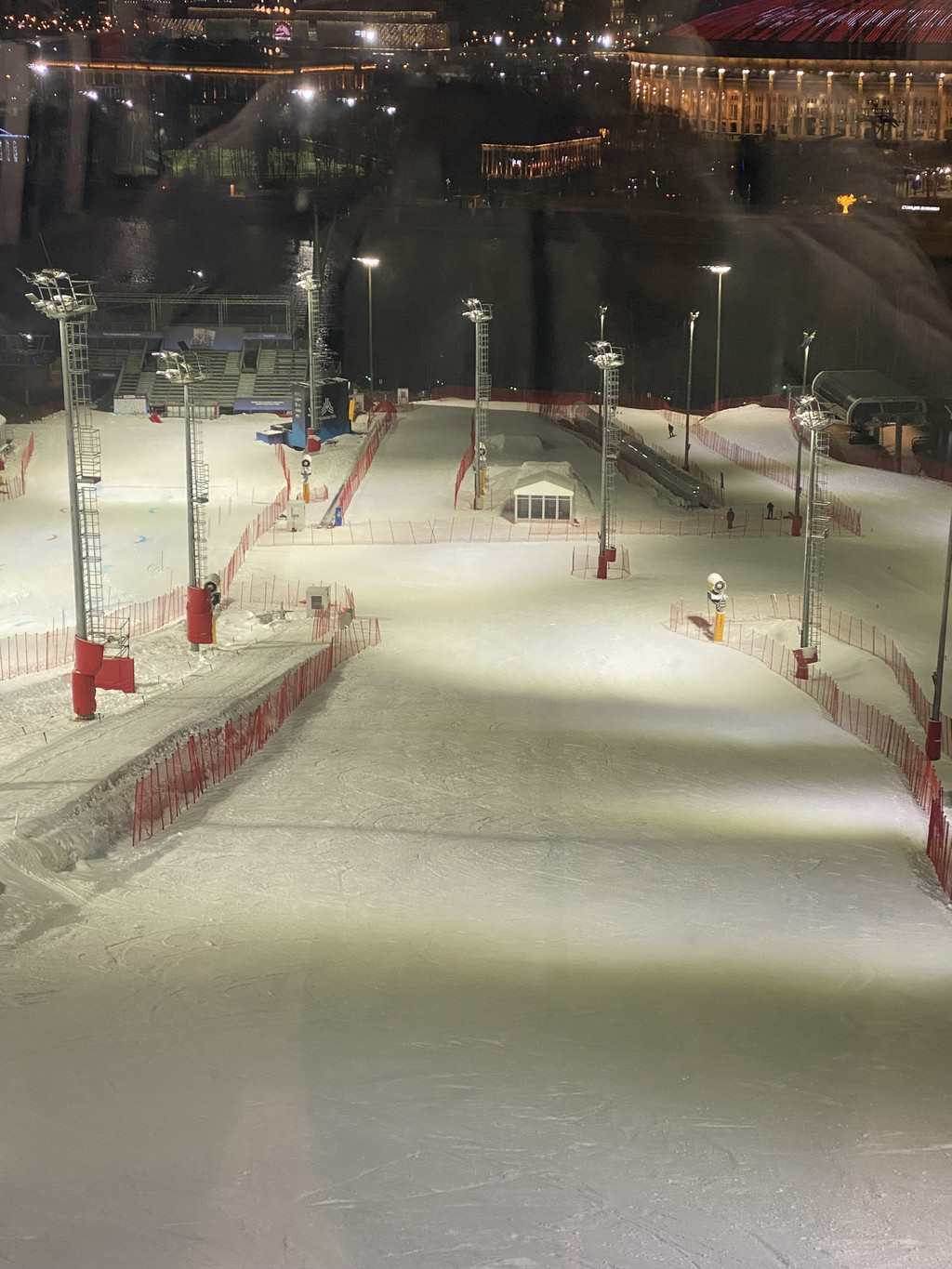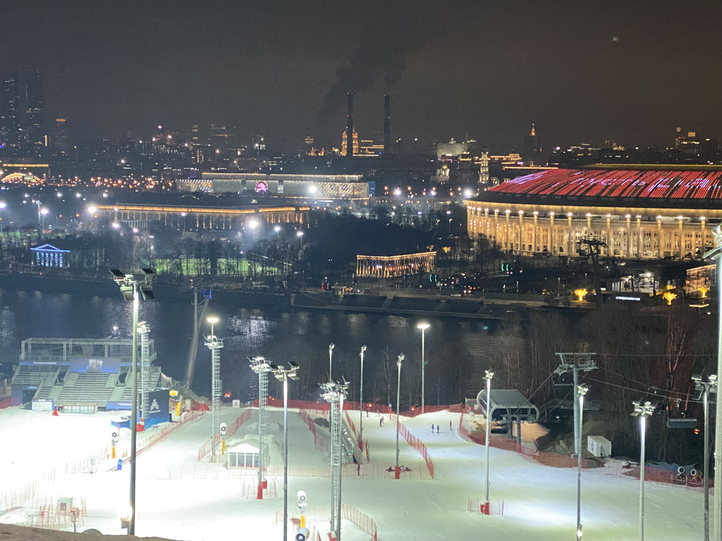 晚餐后乘坐地铁去麻雀山散步消食,这里莫斯科的制高点,海拔高度为220米,莫斯科河从山脚流过。麻雀山的地铁站也很有特色,在站厅里展示了关于普希金及与之相关人物的服装道具,地上还有3D画。从地铁站出来的有两条上山路,都是缓和的斜坡路,挺好走,山上的植被密度挺高,树木冲天。环境很安静,偶尔有跑步者经过。走到接近山顶时,人才逐渐多了起来,路一侧售货亭一个接一个,到了山顶,是一个灯光滑雪场的入口,在这里可以租借滑雪器具,隔着雪场的落地玻璃可以看到几条笔直陡峭的雪道,游客们坐着缆车到达山顶,络绎从这里滑下去,在这里还可以俯瞰莫斯科河及市区全景。