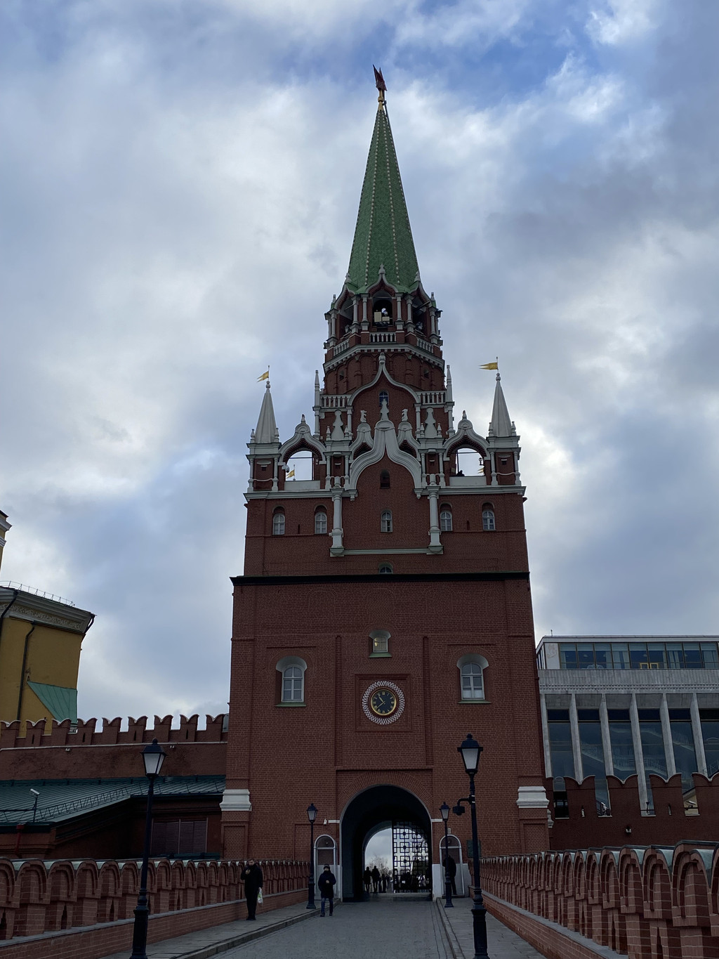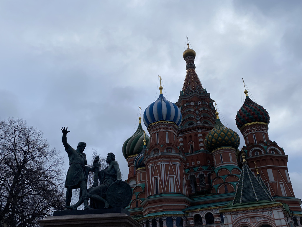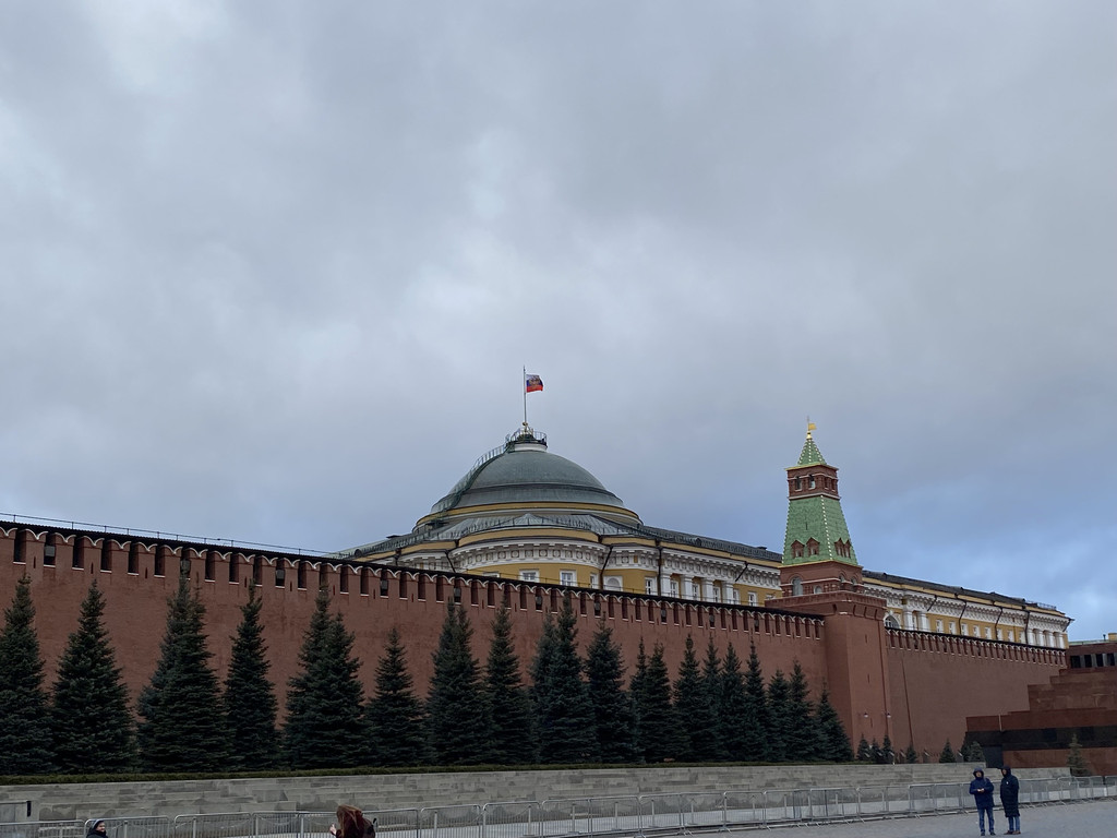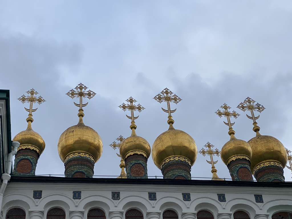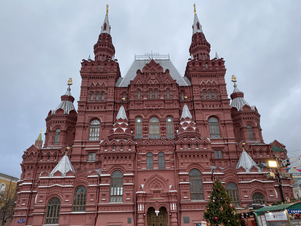 2/2冬天的莫斯科天亮的特别晚,早上近十点天才逐渐亮起来,而且天一直是阴沉沉的,很难看到太阳。首先打卡的红场是个开阔的大广场,南北长695米,东西宽130米,总面积9万平方米,呈不规则的长方形,地面全部由古老的条石铺成。红场的北面为俄罗斯国家历史博物馆, 东面是Gum百货,南部为圣瓦西里升天大教堂。西侧是列宁墓和克里姆林宫的红墙及三座高塔,在列宁墓上层修建有主席台。红场因为克里姆林宫的红墙而得名,广场是俄罗斯重大历史事件的见证者。其每年一度的阅兵式使它一次次成为世界瞩目的焦点。圣瓦西里升天大教堂是典型的东正教建筑风格,有九个颜色各异的洋葱头屋顶。大教堂当年受沙皇伊凡大帝之命主持修建的,以当时伊凡大帝非常信赖的一位修道士瓦西里而命名,广场再往南走就是莫斯科河。与圣瓦西里大教堂南北相望的是俄罗斯国家历史博物馆,这是一座极具新俄罗斯风格的朱红色建筑物,在主体建筑物的两侧各有一座高耸对称的塔楼,还有装饰性的尖塔、三角檐与圆拱型窗户。馆内收藏了俄罗斯文化与艺术品瑰宝的宝藏库,有大批文物。广场的西侧就是克里姆林宫的红色围墙,一直向北延伸到无名烈士墓。紧贴中心段围墙的是列宁墓,列宁墓式室内的,进入不得背包,不得摄影摄像,有序排队围绕列宁的水晶棺瞻仰一圈。出了列宁墓沿着红墙就是卫国战争期间的牺牲的众多烈士墓,有墓碑和文字介绍,一些墓上摆放着鲜花。