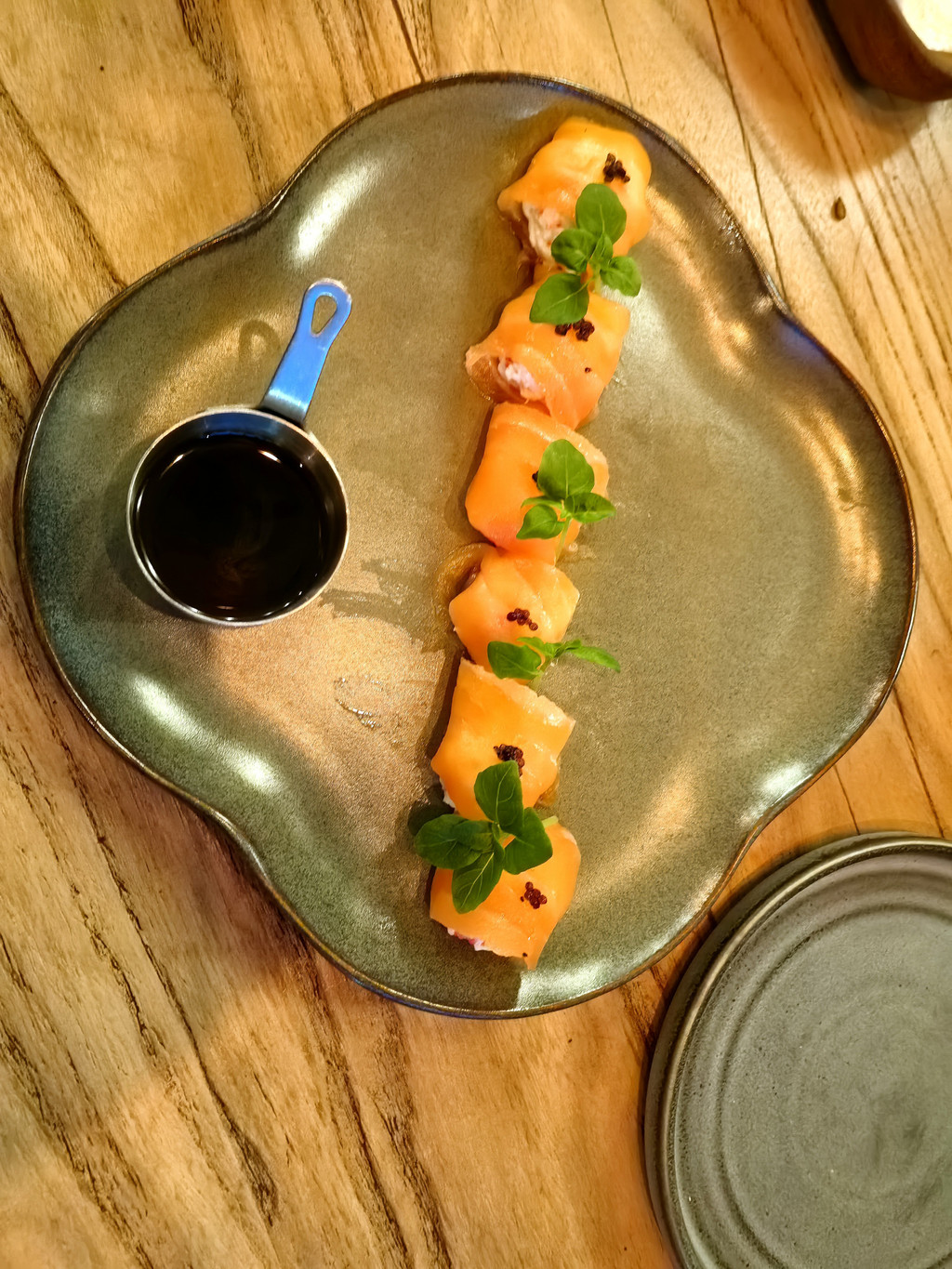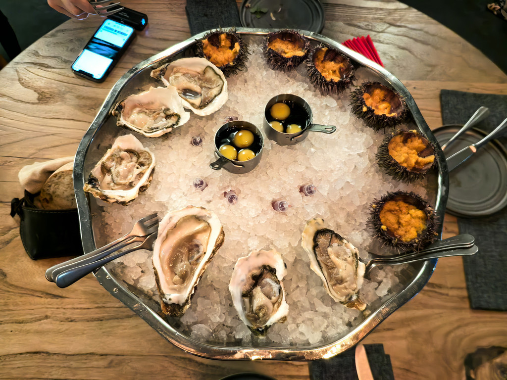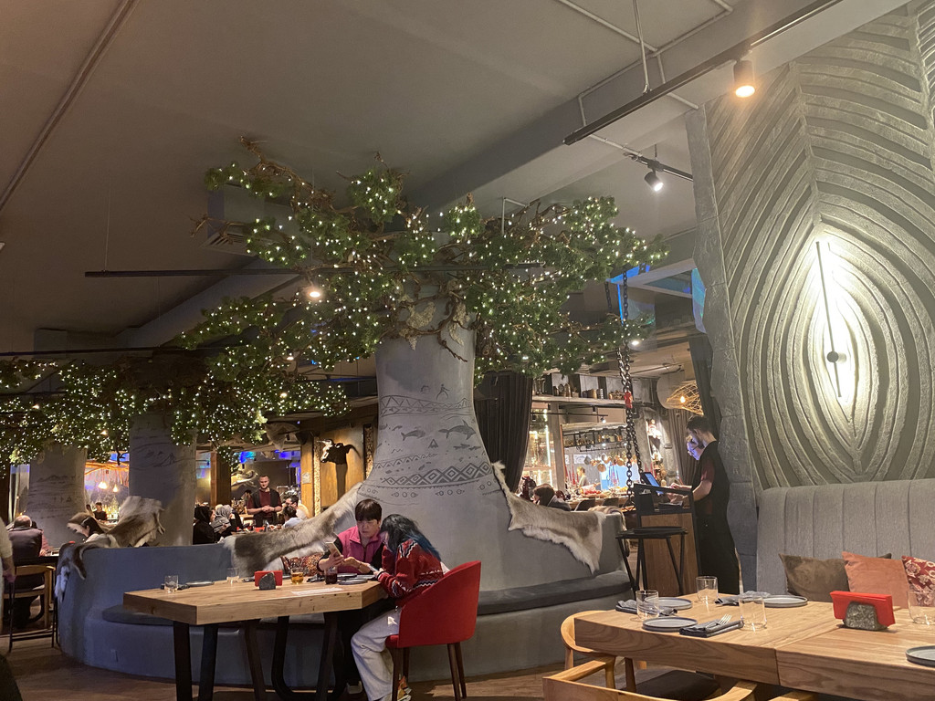 傍晚,我们慕名去了当地另一家网红餐厅Sampo用餐,装修是丛林洞穴风,里面最出名的就是海胆和生蚝,我们点了六个海胆,六个生蚝和一份三文鱼卷,海胆和生蚝每个很大,肉汁饱满,上餐时配有由生鸡蛋和类似红醋的调料混合而成的调汁,可以把调汁倒入海胆内吃。海胆和生蚝非常新鲜,没有任何泥沙和腥味,入口即化,回味无穷。一个海胆290卢布,一个生蚝390卢布,一顿餐吃下来5280卢布,可以说性价比非常高。