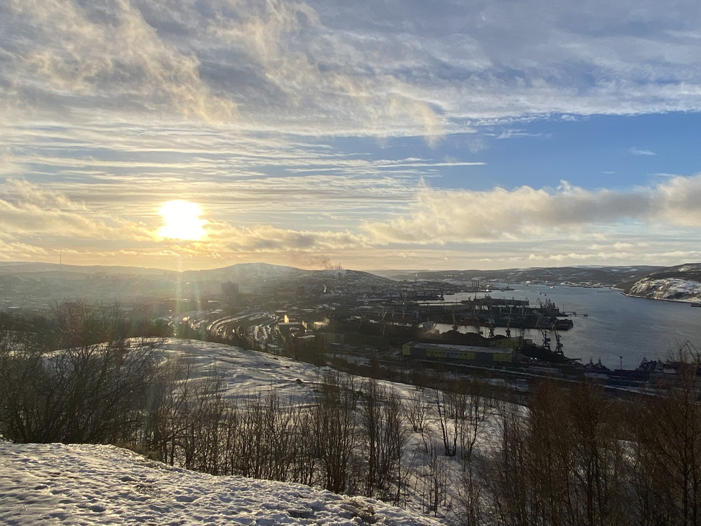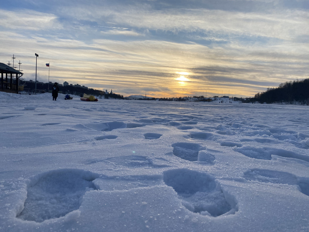 从圣彼得堡飞往摩尔曼斯克航程大约两个多小时,机场非常小,只有一根行李传送带。摩尔曼斯克位于北极圈内,是俄罗斯乃至世界最大的军港之一,北方舰队所在地,也是俄罗斯最大的渔港和北方最大的商港。因受北大西洋暖流影响,港湾终年不冻。出了机场,就感觉到北极圈内外的不同了,虽然圣彼得堡也积着雪,但是积雪的范围不大,而且雪踩上去是软软的,来到摩尔曼斯克,则是满世界的冰天雪地,雪已冻成了冰,地面的泥土与冰雪混为一体,踩上去非常硬、非常滑,因此走路要特别小心。从机场出来到106公交车站的短短的一段路,拖着行李走的很艰难。106公交车是从机场开往市区的,终点是摩尔曼斯克火车站。此线路有两种车型,中巴和大巴,间隔发车。中巴座位少,车厢小,如果随身携带多件行李,建议坐大巴,我们就是因为行李太大太多放不下,从中巴换到大巴,车票141卢布/人,如果有大件行李还要买行李票,46卢布/人,有售票员,而且可以刷卡购票。从机场到火车站的车程约一个半小时,到了后,我们就到旁边的世界最北麦当劳吃午饭。说是麦当劳,其实因为被制裁,麦当劳已撤牌,换的是俄罗斯当地的品牌,不过店里的装修、设备、菜单和食物品类还是和原来麦当劳一模一样,价格也相当亲民。我们今天的行程计划是飞机到了摩尔曼斯克,直接打车去捷里别尔卡,2/7—2/9吃住玩都在捷里,2/9返回摩尔曼斯克,但是得到消息,自2月5日起,因为天气缘故,通过捷里的路一直封着,所以我们一直坐在麦当劳等待看晚些能否解封,同时也尝试寻找其他去往捷里的交通工具,一圈问下来,只有直升机和全地形车还可以进入,但是价格比较高,小某书上问的全地形车单程要价1800元人民币/人,更关键的是担心进得去出不来,如果持续封下去,出来又是难题。一直等到下午5点左右,看来今天解封没有希望了,我们赶紧预订摩尔曼斯克当地的住宿,估计是类似我们的情况不少,Островок上当晚已没有什么房间了,抢了一间民宿后,打车到了目的地是一栋类似国内老公房的老旧多层住宅楼,没有店招、没有引导牌,始终找不到这家民宿,一当地好心人帮我们打了民宿的电话,得知民宿就在这个住宅楼内,而房东老板要一个小时以后赶来,眼看着要在冰天雪地里等了,正好有几个同胞也住在这个楼内,开了楼下的单元门,得以进楼内等,同时还碰到了同样因捷里封路而流浪的另一位同胞。房东姗姗来迟,给我们开了房门,是国内那种普通的一室一厅,房间里有床、客厅有沙发,有厨房和卫生间,好在还算宽敞干净、又有暖气,加之时间不早了,两家人就房间、客厅分别将就着住了。听说房东在这栋楼有好几套房,我们赶紧再订了一间两晚,不走线上便宜些,8000卢布房款,及6000卢布押金直接付给他。