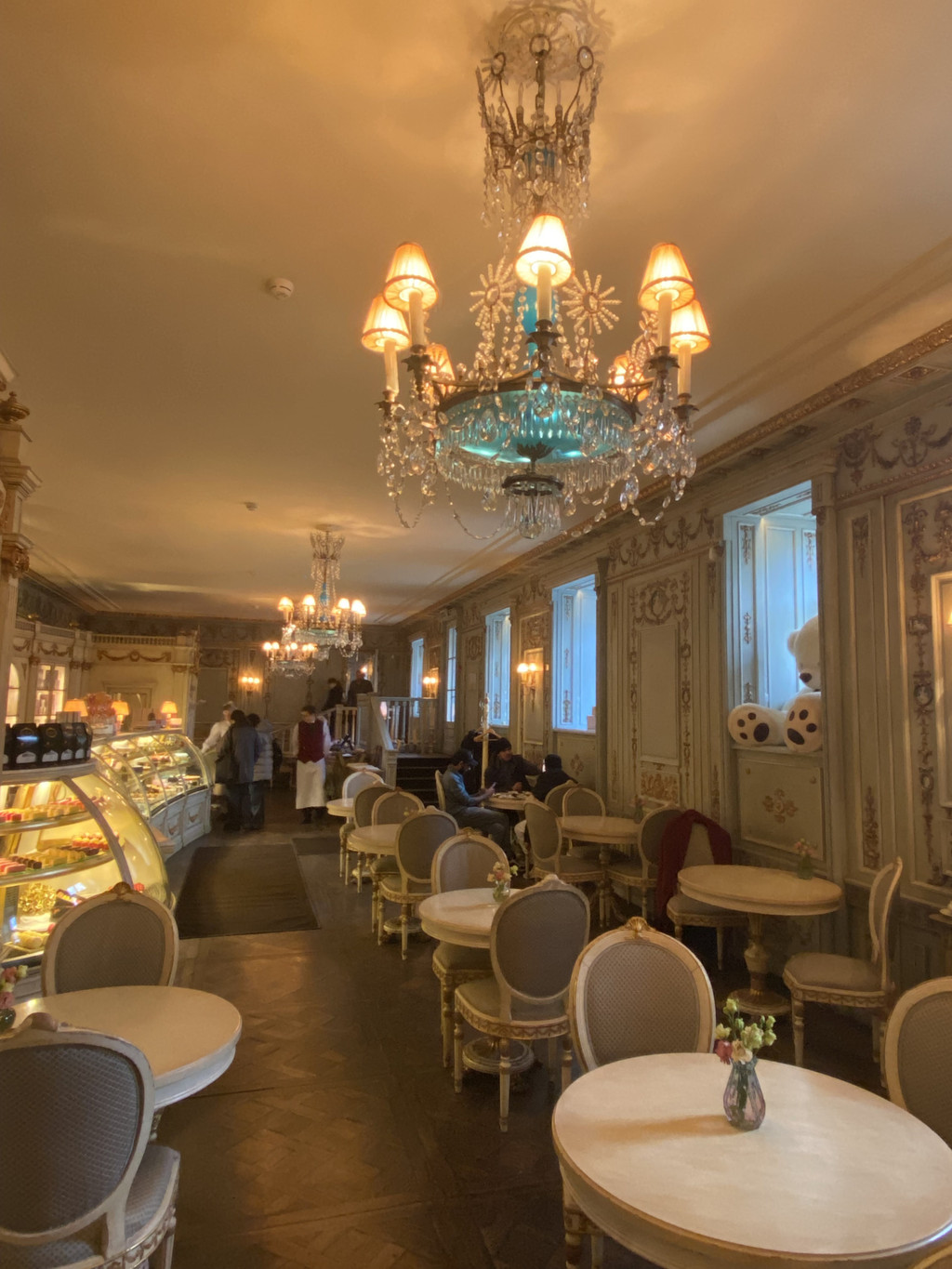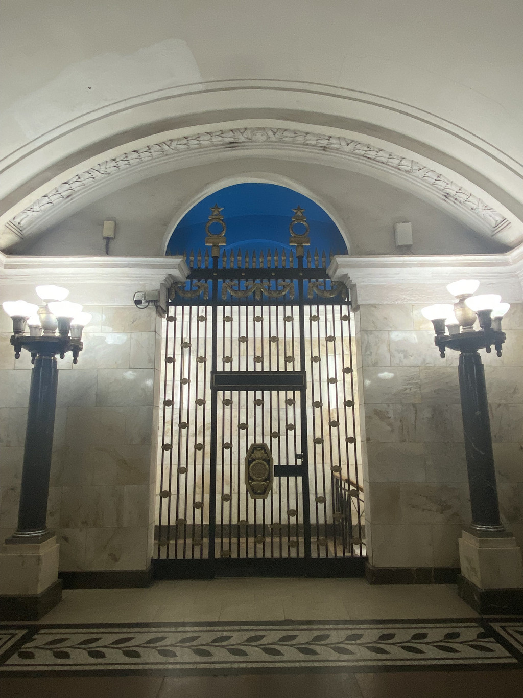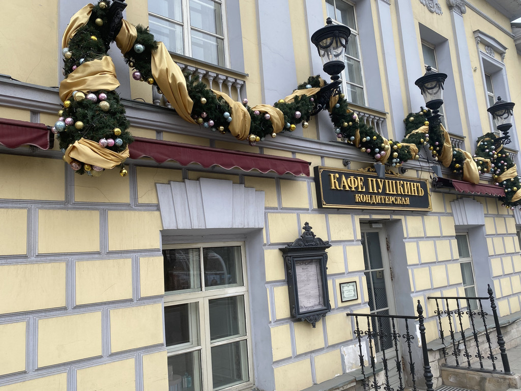 2/11回到莫斯科,今天的行程主题就是莫斯科地铁游。上午参观普希金的雕塑后到旁边的普希金咖啡馆用早餐,但是与普希金没有任何关系,可能在普希金雕塑旁才这样命名的吧。这是一家非常著名的餐厅,曾被《金融时报》评为“欧洲最好的25间餐厅”之一。咖啡馆装修古典奢华,室内呈现古典的白色装饰配以金色的雕花勾线,搭配嵌在壁龛中的古希腊雕塑,充满着浓浓的俄式美学。服务也很到位,每个区域都有专属的服务员,非常贴心,当然,好的环境消费价格也不菲,点了两杯拿铁、一杯热巧克力,再加两个派,价格3760卢布,其中服务费10%。