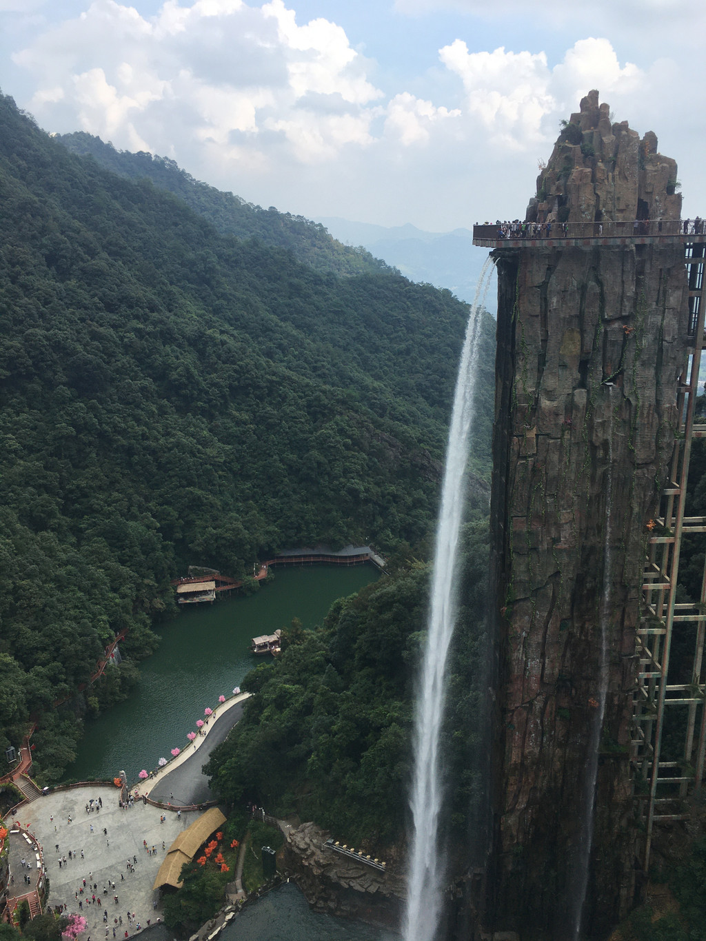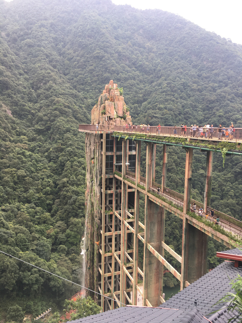 坐电梯是不用钱的,就是从这瀑布顶一直坐下瀑布底部
