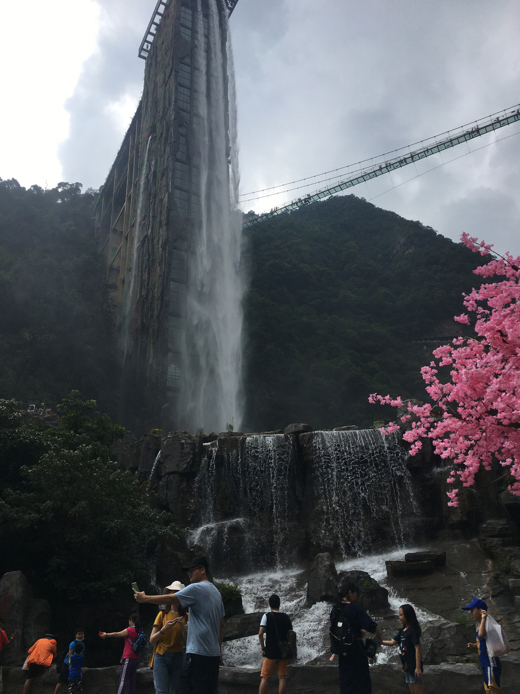 穿过瀑布玻璃桥,在下面看和感觉很不一样