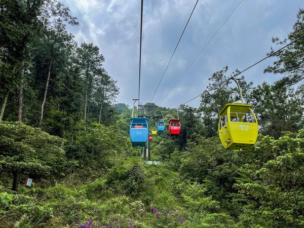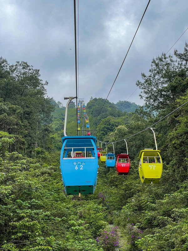 无论什么时候前往,还没有走到景区就可以看到远处云雾笼罩的自然美景了,尤其在乘坐糖果缆车一路向山顶进发的时候,感觉自己渐渐地走进了云端里,缆车外面一片郁郁葱葱的景色,“天然森林氧吧”的美誉真是名不虚传,走出缆车便可以登上祥云楼登高远望,一览云门山下的美景!缆车既是代步工具也是一个一家人共度温馨时光的空间,快点享受安静的观景时光吧!