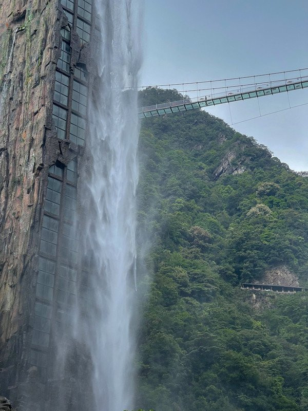 你以为只有玻璃桥够刺激就可以了吗,落差168米的云上飞瀑也是非常有必要来挑战一下的,用惊险、刺激、疯狂来形容都一点也不为过,完全就是视觉的盛宴!春夏雨季之时,水流量最是震撼、壮观,全方位无死角的美景好似仙境一般,雾气四散的场景一度让人以为走错了地方!每当阳光明媚太阳光芒四射的时候,瀑布水在阳光的照射下还会形成一道耀眼的彩虹悬挂于山间,真是让人目不暇接!