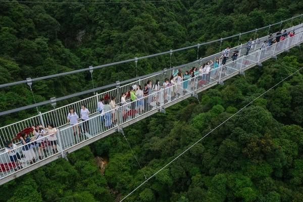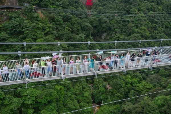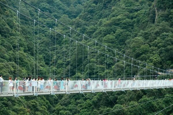 值风和日丽之时,踏在玻璃桥上,景区峡谷风光尽收眼底,行走其上彷如“人在空中走,景在脚下游”,惊险无比。