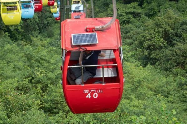 云门山缆车线路长约800米,乘坐起来可以看到对面五颜六色的小缆车。缆车是没有玻璃的,所以也可以尽情的呼吸新鲜空气了。