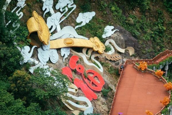 在玻璃桥上就已看到了巨大的“福”字,静卧在山谷中,从玻璃桥下来之后,步行不远便走到跟前,这就是鸿福磐。