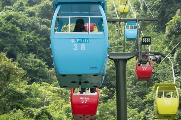 游客置身缆车可从不同方位和角度欣赏云门山景区秀丽的美景,沿途可近观古木苍翠,穿梭其间,宛如漂浮在仙境之中,云门山景区无限风光尽收眼底。