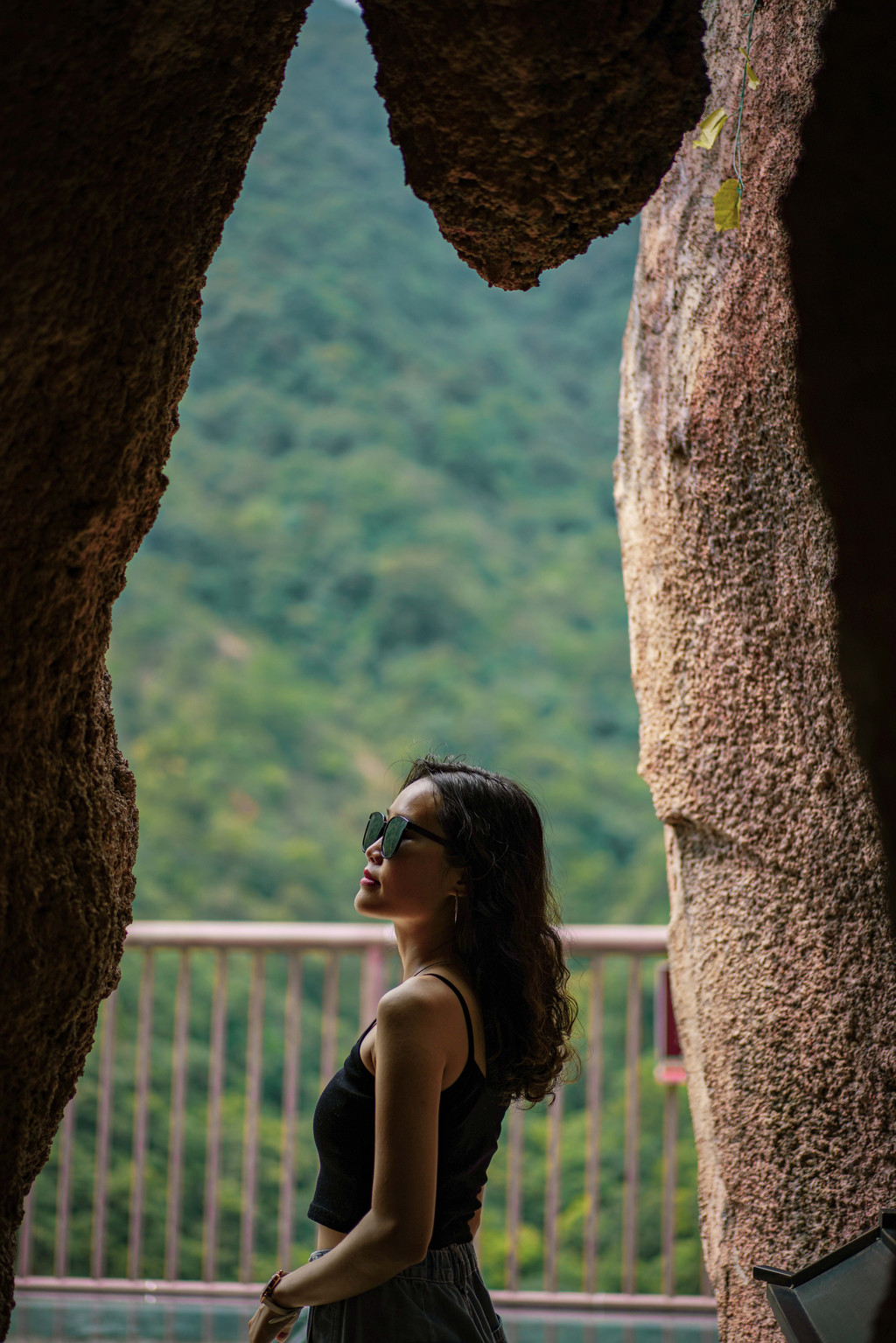 在云上飞瀑玻璃平台的云山秀顶区域,能看到山洞一样的俊秀景观,里面有一些倒挂钟乳石般的景观,很不错。透过出口的位置往外拍,还能拍出山洞一样的特别照片。