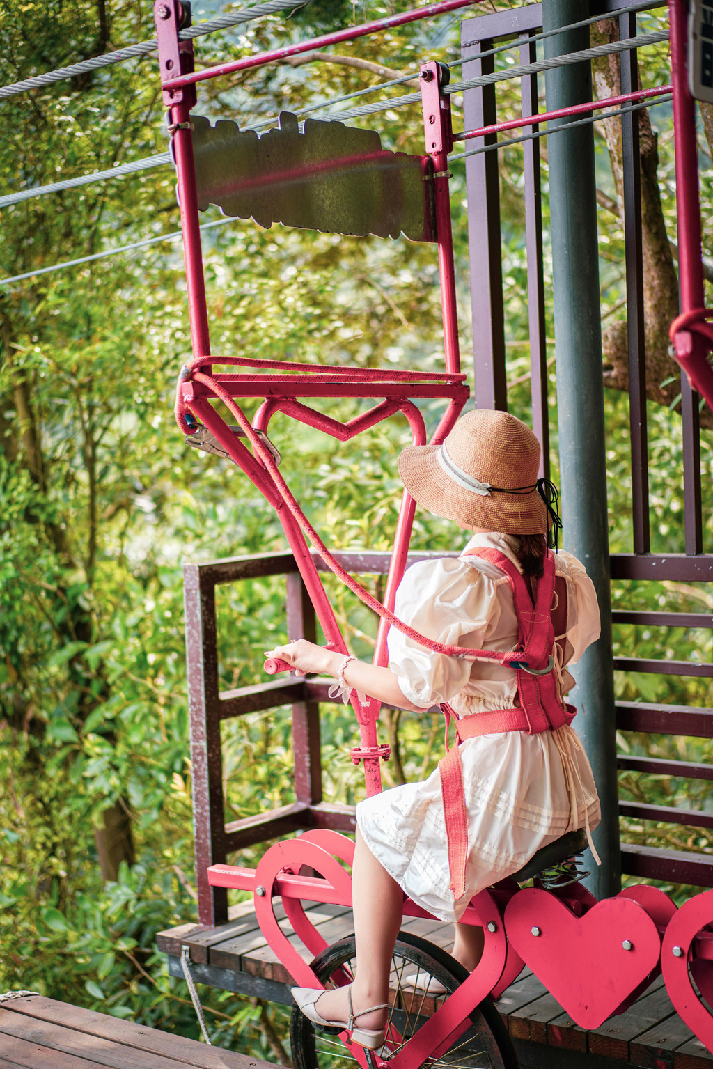 “步步惊心”的旁边便是“高空自行车”,平时只能在杂技表演上看到的高空自行车,这次要亲身体验一下,简直是惊险极了!