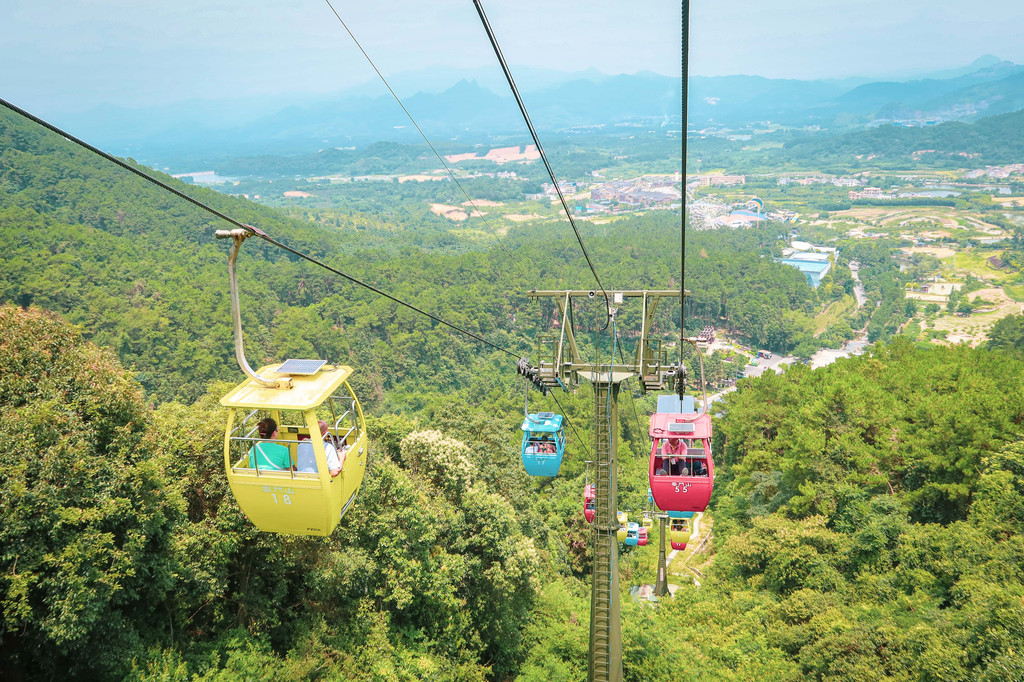 上山可以乘坐糖果缆车,这也是十大网红高空项目的其中一个,跨越高度达328米。