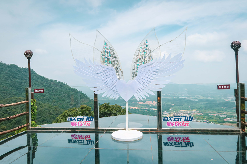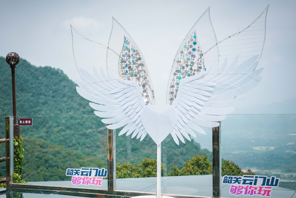 十大网红高空项目沿着木栈道往前走,就来到了天空之境。地上是大面积的镜子,围栏边上有一双张开的天使翅膀,远处的美景,近处的天使翅膀,还有镜子倒影的蓝天白云,这一切美得如梦如幻。站在天使翅膀前面,随手一拍都是大片,非常适合小姐姐们来拍照。