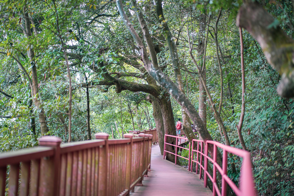 景区内的生态环境非常好,走在栈道里,能看到很多大树古树从路旁生长出来,在修建栈道的时候,为大树留了足够的生长空间,这一点做得太棒了。