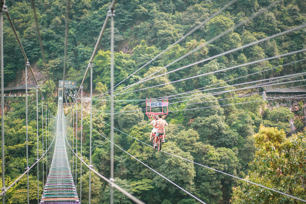 云上瀑布旁边便是云门山风景区非常有名的云门山玻璃桥,这也是我们高空挑战的第四项,云门山玻璃桥全长316米、宽2.8米、垂直高度达168米,相当于在50层楼左右的高度!