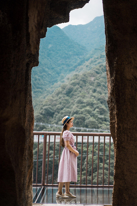 就是以洞口为前景,然后人站在玻璃栈道上,像画框一样框住,很喜欢这样的构图,于是拉着小伙伴拍了好久。