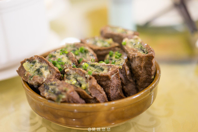 酿豆腐,里面用料十足,有韭菜肉碎等~