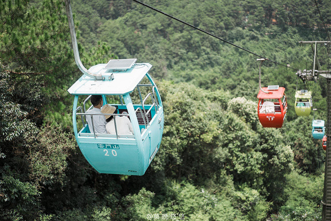 上山的话,可以直接乘坐糖果缆车,不用担心大夏天太热太累的问题。坐上缆车,可以一路缓缓欣赏这山间的风景,置身于这绿色的海洋之中,不由自主地深呼吸。而远处的风景亦是十分秀丽,让人看了心旷神怡。