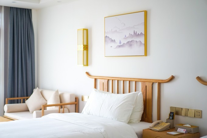 客房内采光充足,几乎每个房间推开窗都可以看到云门山的风景,别问山有多高,云有多深,只缘身在山中。