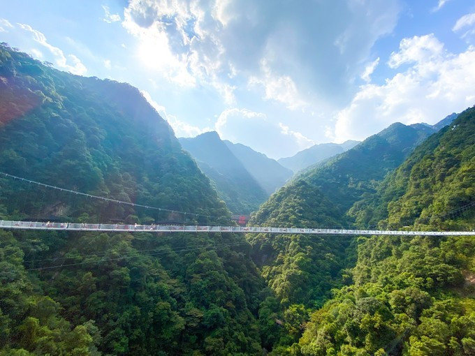 高空玻璃桥自云门山望君台直通对面的险峻山峰,横跨百米峡谷的这座高空玻璃桥是 广东 省规模NO.1的全透明高空景观玻璃桥,桥体全长316米,垂直高度达168米。