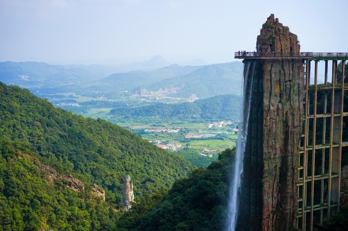 云上飞瀑云上飞瀑是获“世界最高最大的吉 尼斯 纪录观景瀑布电梯”认证,是世界最高和最大的瀑布内观景电梯!也是国内罕见的瀑布与电梯组合游玩项目!电梯瀑布落差达168米,相当于50层楼高,1分钟便可由电梯底平台冲上云霄!瀑布顶的云山秀顶设有80米长的观光平台玻璃步道,可俯瞰8米宽的出水口以及恢弘的巨型福字山体石刻作品。