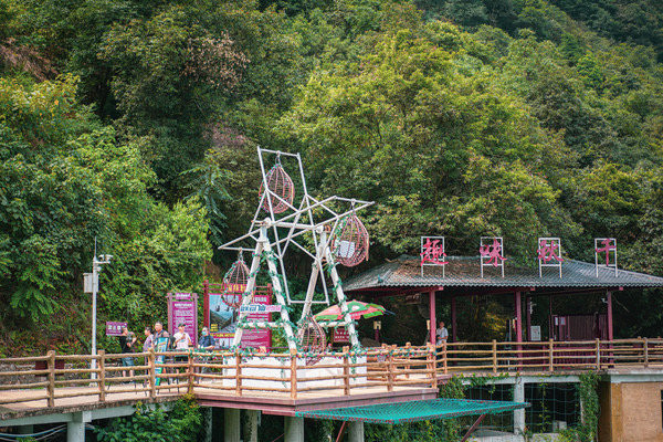 考验情侣默契的项目来了!高空踩单车,两人配合在高空骑行,稍不注意就会出现轻微的左右摇摆(当然还是很安全的),肾上腺素飙升的同时别忘记欣赏一下沿途风景,听一听飞过身边的小鸟,时不时在叽叽喳喳唱歌,这种沉浸式体验,绝对是两人的难忘回忆。