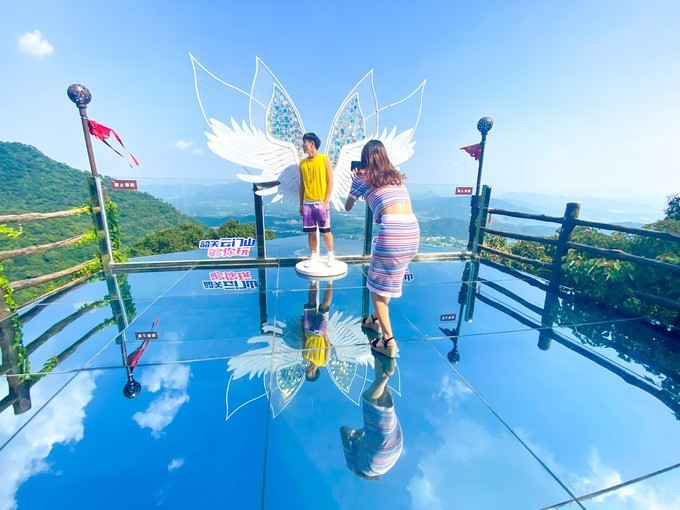 天空之镜这也是来云门山的指定打卡位之一,洁白无瑕的天使翅膀,阳光下更是引人注目。巨大的天空之镜,倒映着蓝天白 云和 远处青翠的山峦,独特的镜像画面,这照片分享到朋友圈肯定获赞无数!