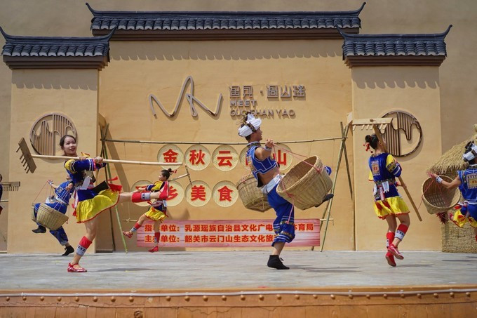 瑶族米酒“高山流水”,品瑶山特色盆菜,体验地道过山瑶美食节, 打卡网红粮仓,体会丰收的喜悦,观赏过山瑶民族风情表演,体验独特瑶族图腾文化,云门山“云上飞瀑”晒秋活动,感受独特的云上赏秋。