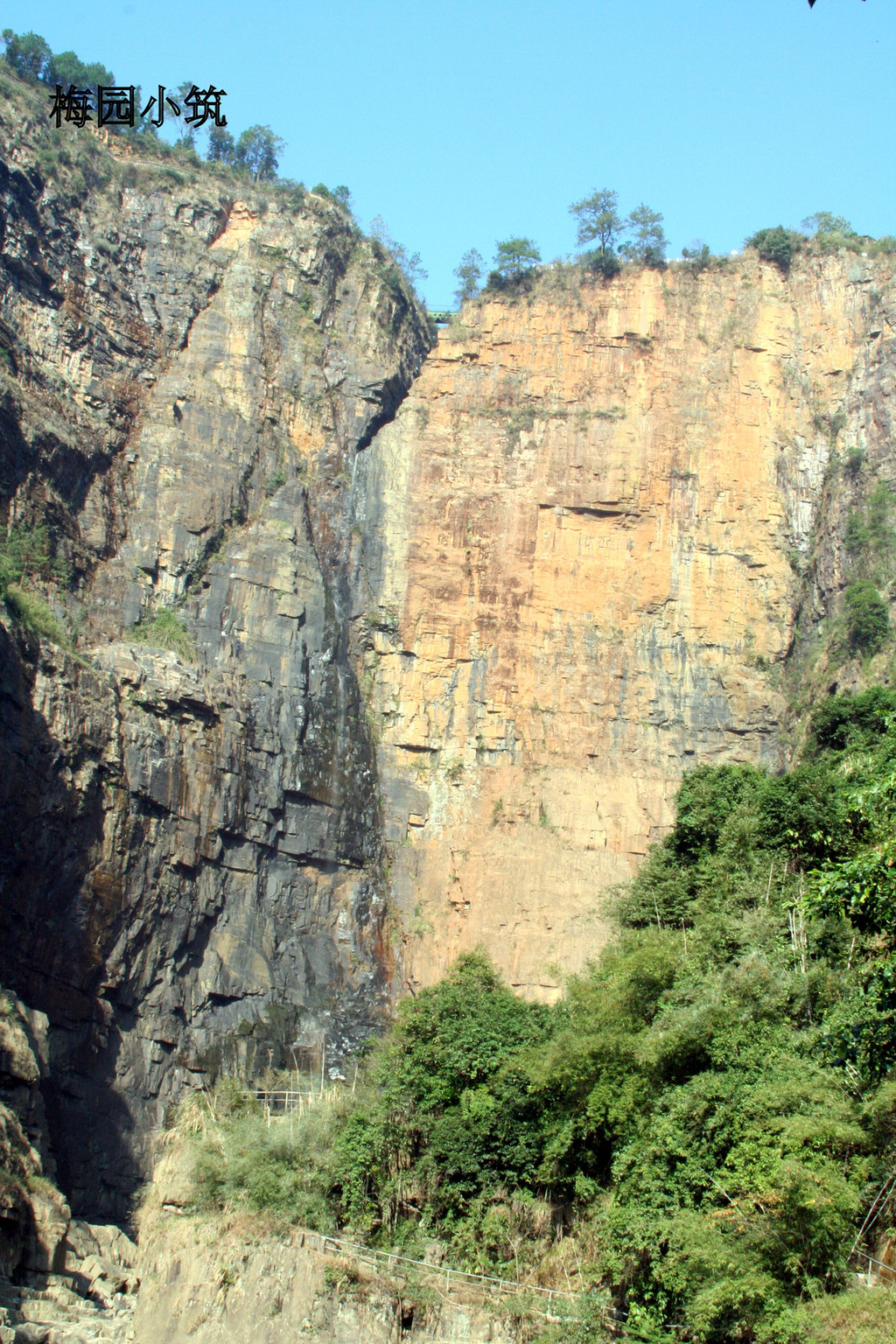 远望峡谷深处,雄奇峻险令人目眩神迷,俯视谷底,云雾蒸腾,深不见底。我们从悬崖一侧的观光梯拾级而下的,三百多米高的悬崖上罗列着1700多级台阶,相当于从80层的高楼从上向下爬,想不叹息都难。