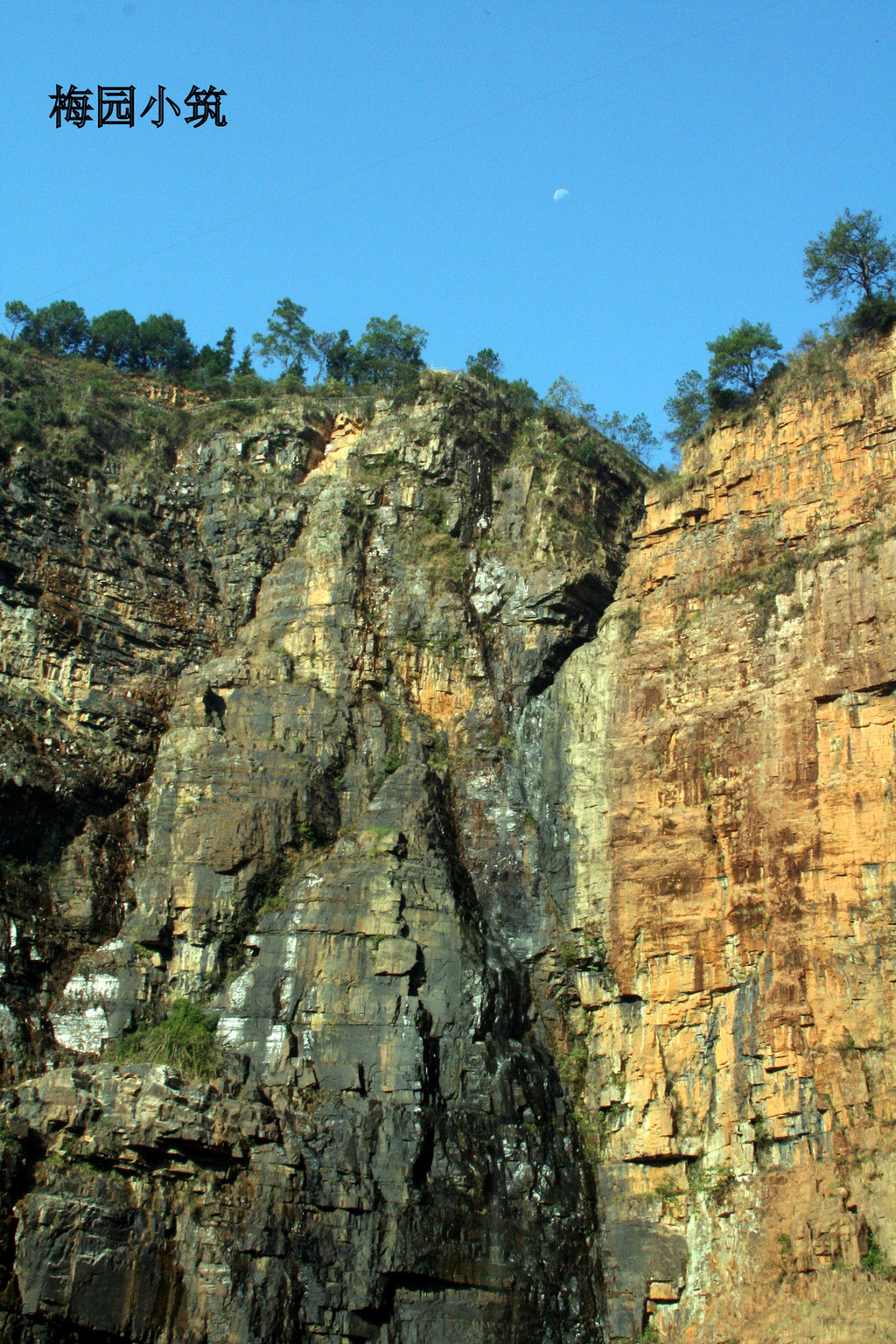 坐在谷底仰望高山,只觉得陡峭的峰峦似乎随时随刻都会压将下来。往上仰望,山就是天,天也是山,前后左右尽是山,我们就静静在这里,注目于山的刚直,挺拔,伟岸。人类在自然面前总是如此渺小,嶙峋的崖,陡峭的壁,就象是刚硬的身躯,挺一身浩然正气,以凛然不可侵犯的刚烈秉性,屹立在天地之间。