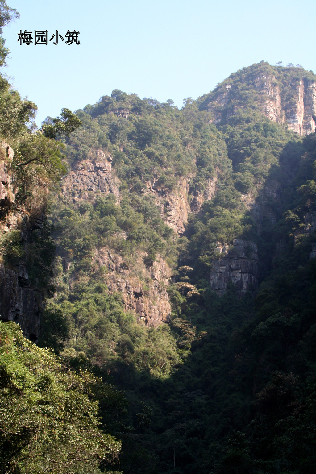谷底的小道是随着峡谷的山势高低变化的,时而在谷底,时而又悬在半山之中,在沟壑两岸漫步,更可以尽情地欣赏两山之间的奇景和秀色。谷底青树翠竹,遮天蔽日,藤萝乔木,莽莽苍苍。悬崖石壁上,不知名的花草树木静静地释放着专属于自己的美丽。徘徊谷底,仿佛走入了一个大自然缔造出的神奇世界。