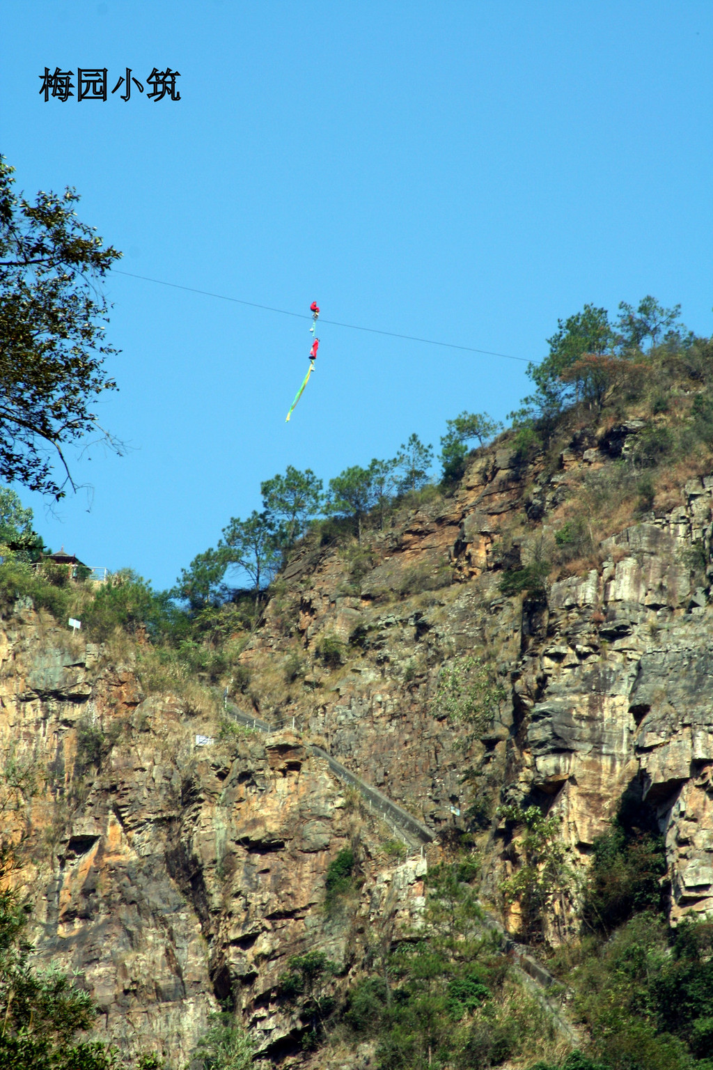 在谷底休息,刚好是杂技表演的时间,远远望去,演员们在两百多米的高空做着各种高难度动作。我们站在峡谷边俯视这深渊,已经是战战兢兢,不知道这些演员们是怎样的感觉?特别是当他们第一次踏上表演用的钢丝...