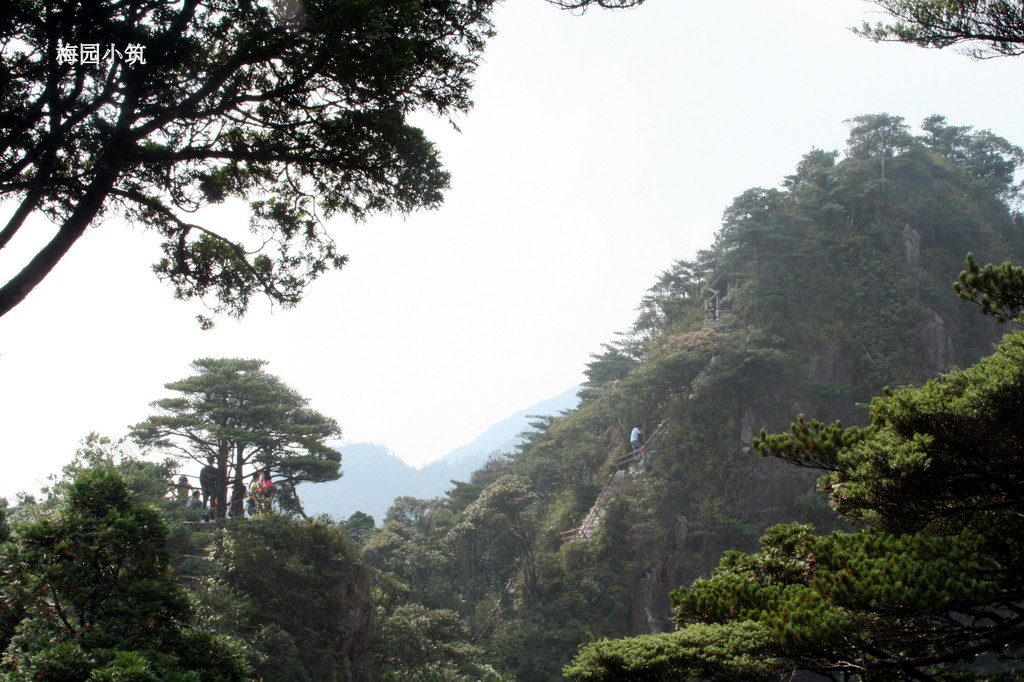 移步山林之间,看着路旁山坡上肥沃的泥土,听着秋虫有节奏的鸣叫,沐浴着山谷中清凉的空气,感受着自然界盎然的生机,任悠然的山风荡尽心中的烦恼和城市的喧嚣。有美景欣赏,但还是在消耗本来就不多的体力。正在精疲力尽之时,眼前豁然开朗,竟然是一派黄山的景象!姿态苍劲,翠叶如盖的南岭松挺拔屹立,悬崖绝壁在青松掩映下倍显壮观。