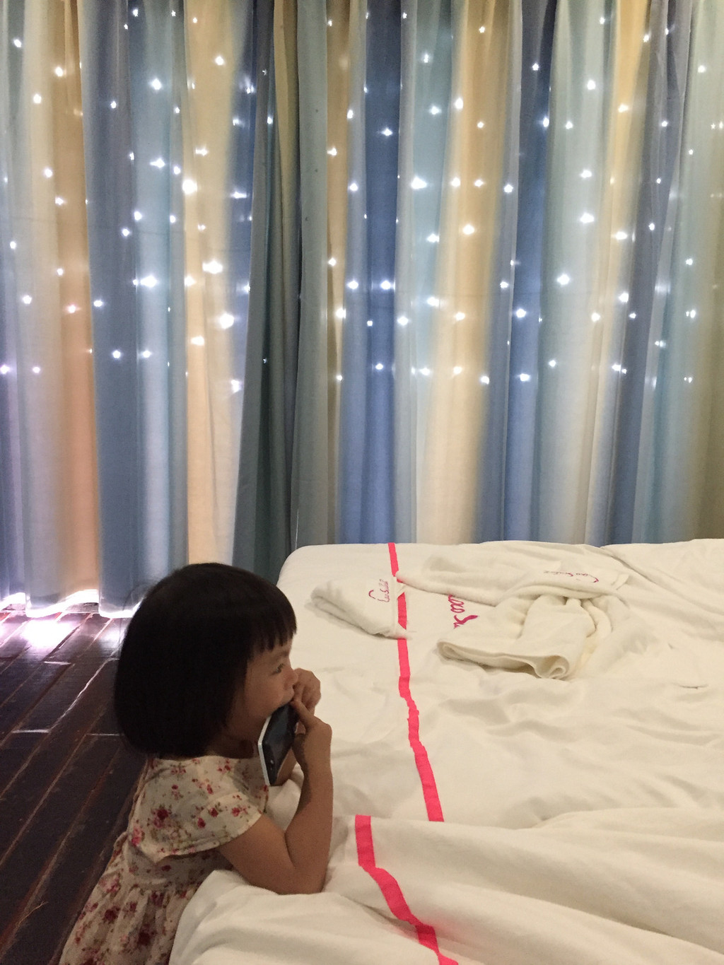 午餐后打车回到太平洋丝绸酒店,2点正好可以入住。阴天,预料到看不到日落,所以睡到6点起来。起来就去游泳,吃饭是外公和老公去Imago Mall打包回来的。等孩子们睡觉后,和老公去散步,这连着有几个酒店,酒店都有酒吧,很是热闹。还是一个港口,白天出海很方便哦。