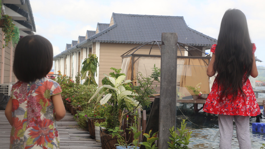 今天农历19,一个月期间退潮最多,所以船没有办法来接我们,水屋蔡老板雇了小船来接我们。2点入住后,先休息了一会,就在水屋上拍照,看景,看日落。