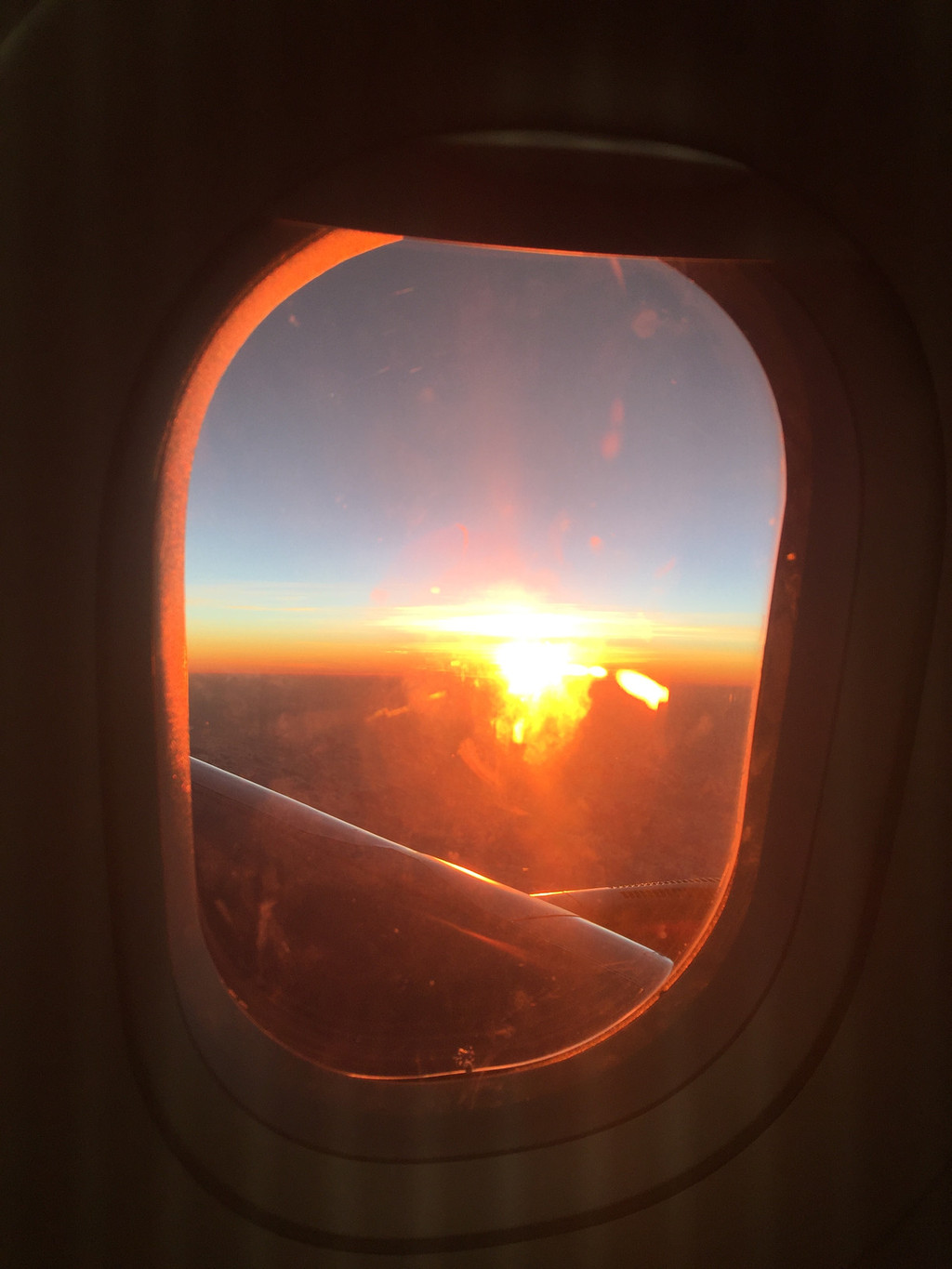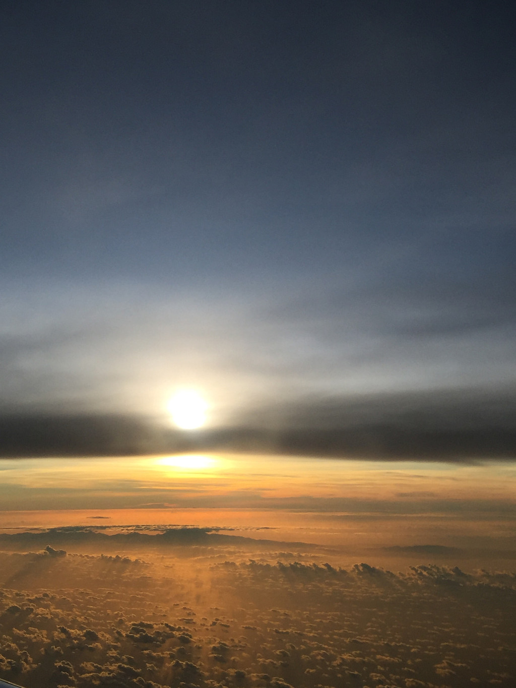 6点多在飞机上看到了美美的日出,满足!孩儿们睡得很香,就是大人累死了!孩子的睡眠质量真的好!下飞机时候还发现有一位同事刚好在同一架飞机上,太巧了!