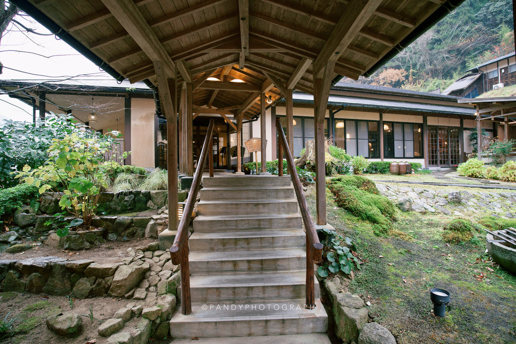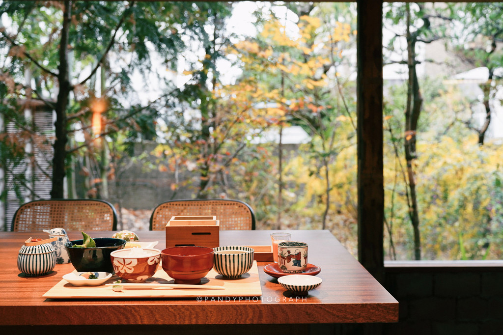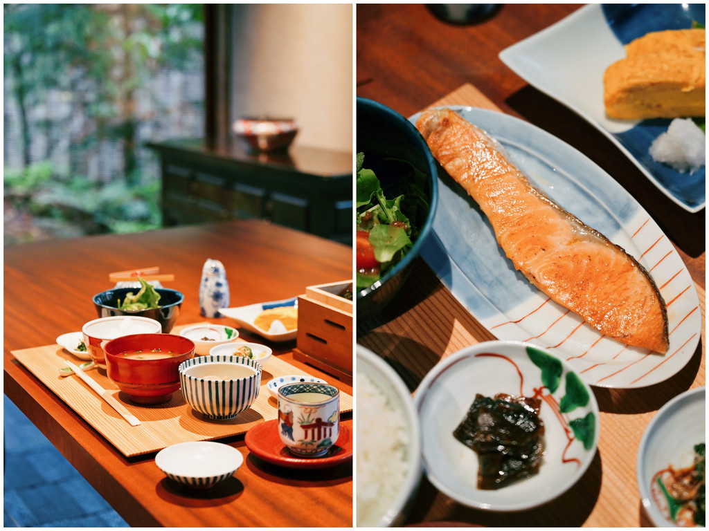 旅馆也可根据客人需要提供怀石料理或是会席料理。另外Pandy很想推荐的旅馆提供的全套日本传统早餐:前菜、米饭、味增汤、色拉、蛋卷、茶碗蒸、锅物、还有一道煎三文鱼,十分满足。别忘了要用佐贺海苔包米饭来品尝,搭配的胡萝卜汁口感清爽。由于餐厅都是在地食材并随着季节性变换,所以菜单会一直变化。如果是秋天来,窗外一片火红的枫叶,想必会是另一番难忘的体验。