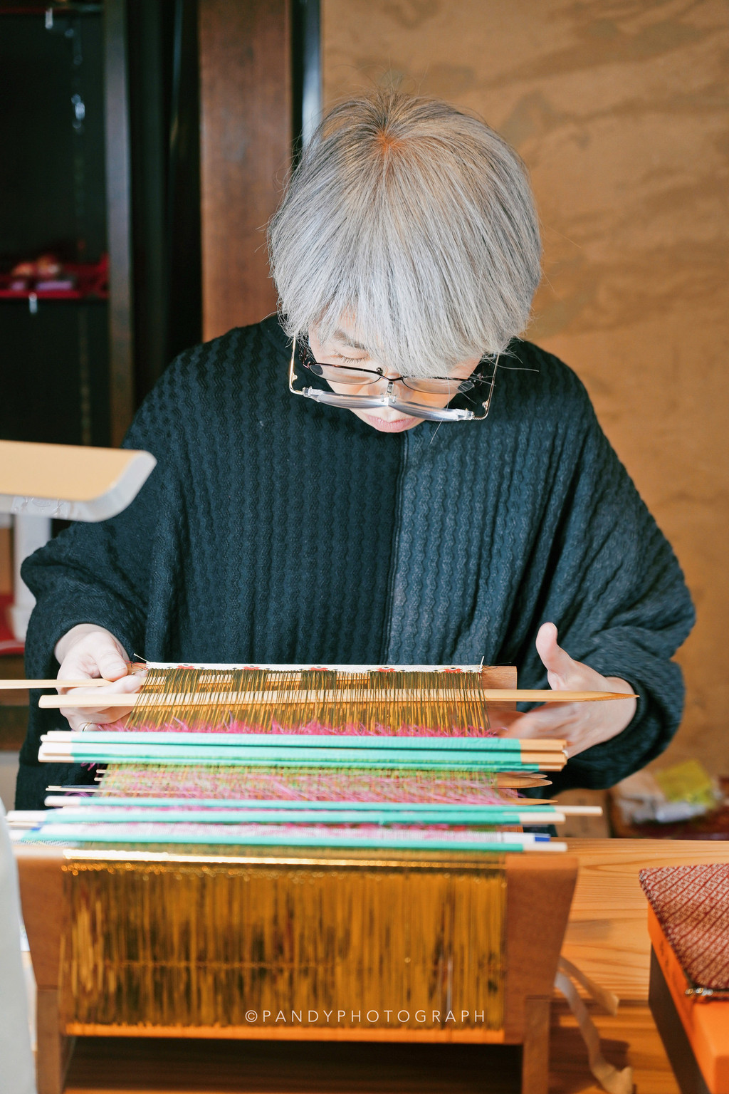 现在的旧福田家同时也是佐贺传统纺织工艺:「佐贺锦」的推广中心。这是一种承载着传统艺术和文化的织物。将涂有金漆银漆的和纸裁切后,再与经纬线一起编织。