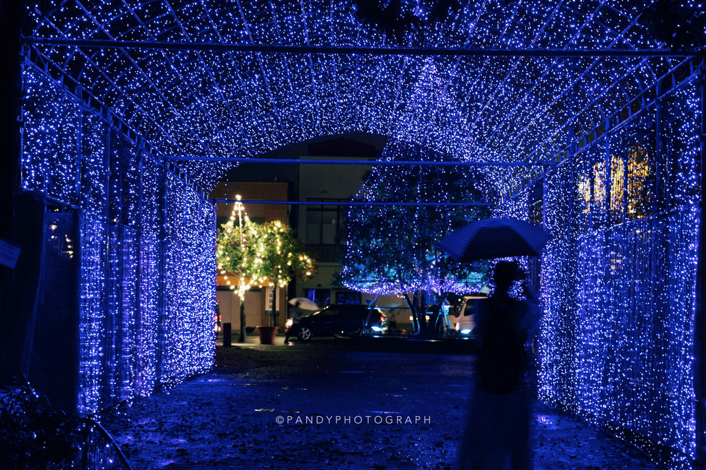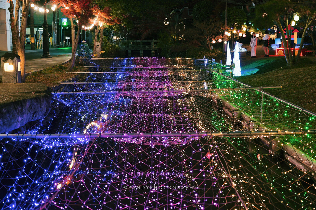 从JR佐贺站为起点,整条中央大街的行道树、建筑物与路灯上,布满了璀璨的灯饰,超级梦幻美好。因为是圣诞节+新年的双节日,所以很多圣诞元素的彩灯,搭配上佐贺的红色电话亭与红色邮箱,真的很浪漫。