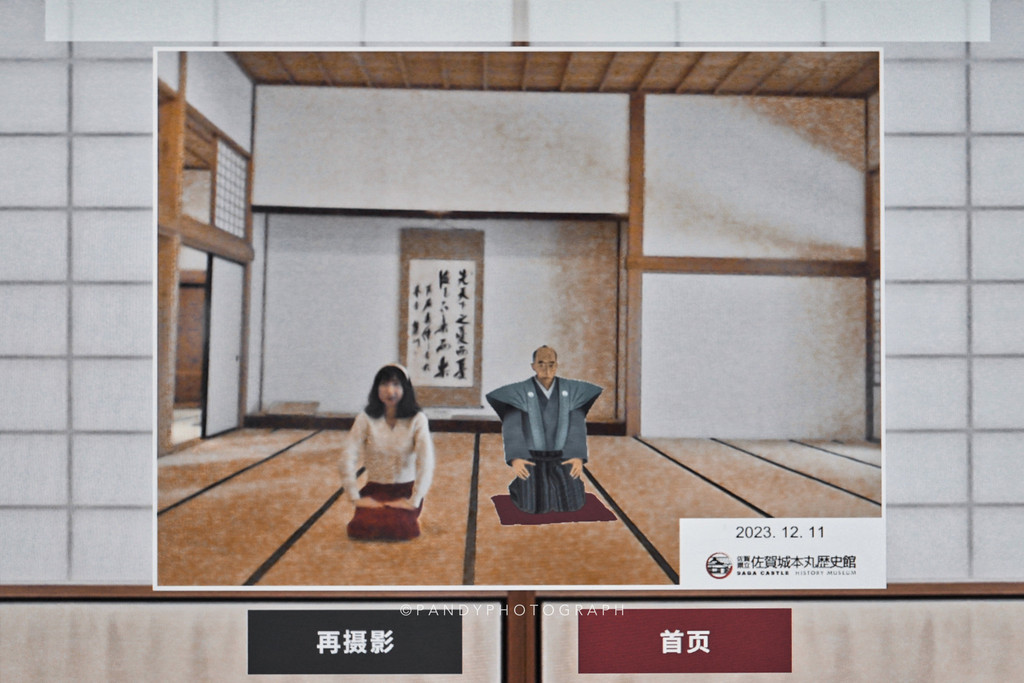 别忘了去看一下现在被佐贺人昵称为:「爸爸」的藩主锅岛,在他居住的房间里有他的蜡像。另外在大厅里则引入了现代化的技术,可以隔空与藩主锅岛合影,还可以用AI影像看到当年群臣聚集在室内朝拜的景象。